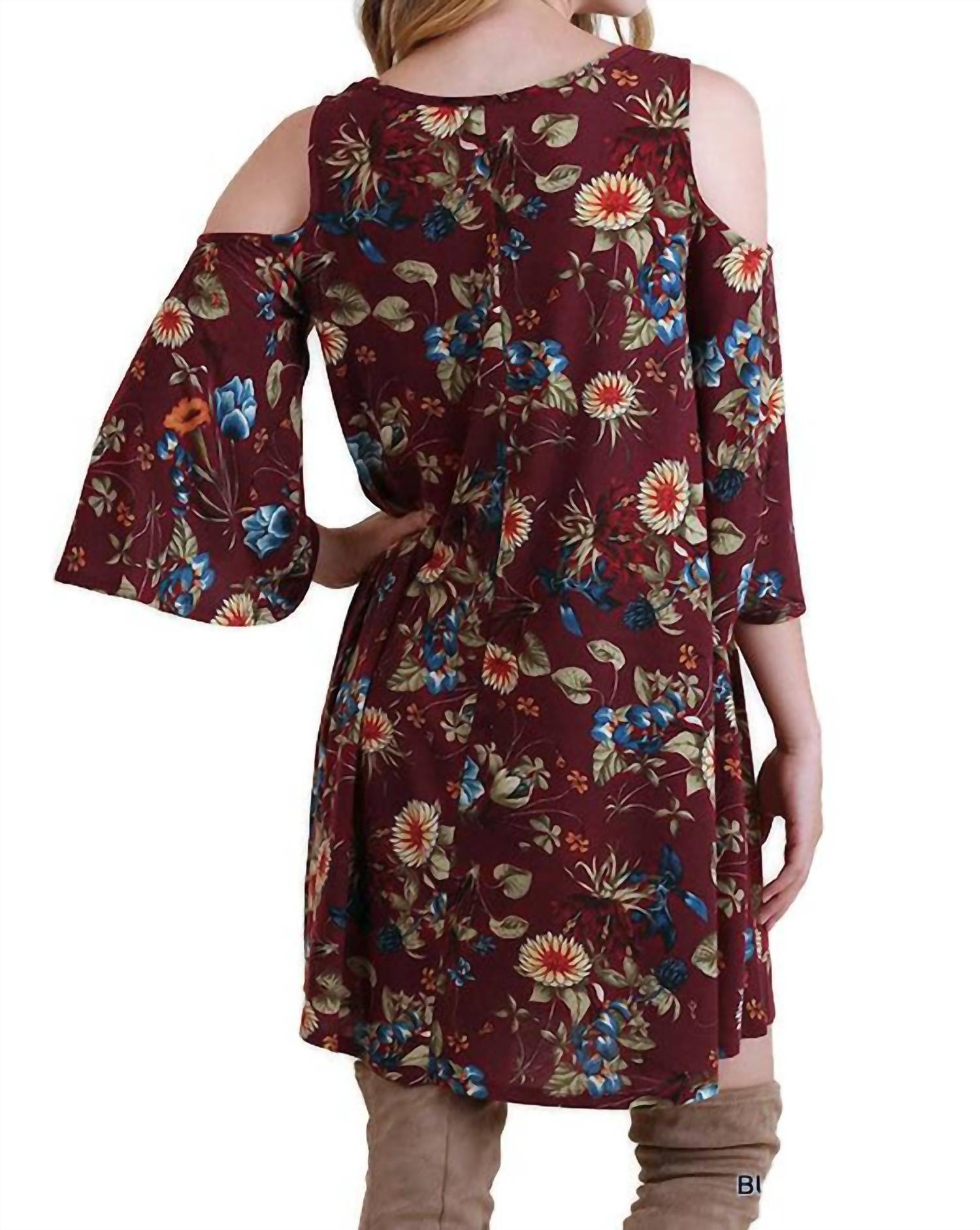 Платье с открытыми плечами в цветочном принте, бордовое Umgee