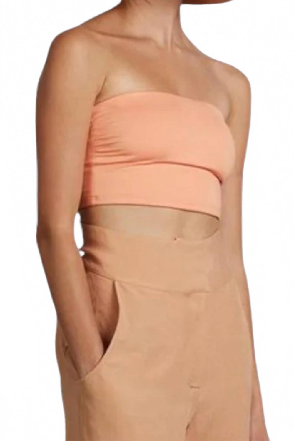 Представляем топ-бандо Stella от BONDI BORN - стильный и незаменимый предмет одежды для купания летом на пляже. Этот удлиненный топ-бандо изготовлен из 80% полиамида и 20% лайкры с использованием инновационной ткани Embodee, известной своей высокой способностью к формированию фигуры и невидимой поддержкой под грудью. Тонкие боковые сборки подчеркивают грудь, создавая изящный силуэт для бюстгальтеров размера AD. Этот топ, представленный в стильном персиковом цвете, обеспечивает среднюю степень покрытия и идеальную посадку по размеру, идеально подходит для стиля athleisure.