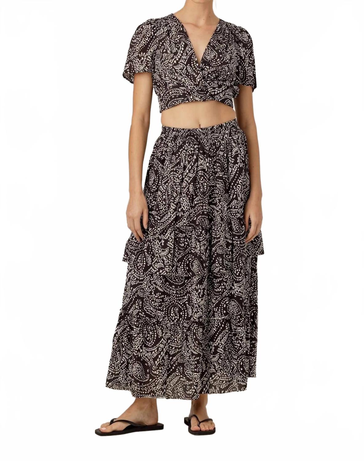 Погрузитесь в ностальгический летний стиль с топом Magalie от Sundays с ярким принтом в виде банданы, идеально подходящим для фестивального сезона. Этот укороченный топ с короткими рукавами, выполненный из 85% вискозы и 15% льна, имеет глубокий V-образный вырез, элегантно обрамляющий ключицы, и присборенную спинку, которая обеспечивает гибкую посадку и выгодно подчеркивает фигуру. Топ имеет посадку чуть выше пупка и идеально сочетается с юбкой Yara, создавая стильный и гармоничный образ. Он невероятно прохладный и незаменимый предмет гардероба для залитого солнцем дня. Уход: машинная стирка и сушка в стиральной машине. На модели размер XS (178 см, талия 65 см, бедра 88 см, грудь 88 см).