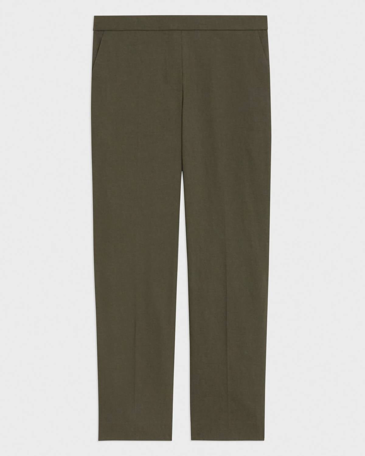 Treeca Брюки прямые укороченные на резинке в темно-оливковом цвете Theory