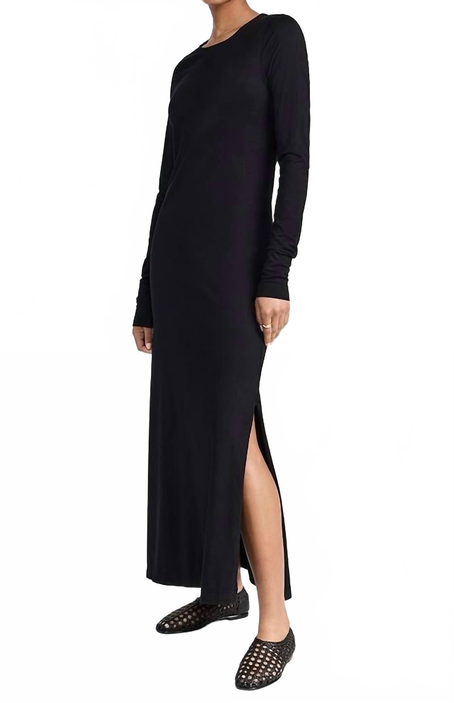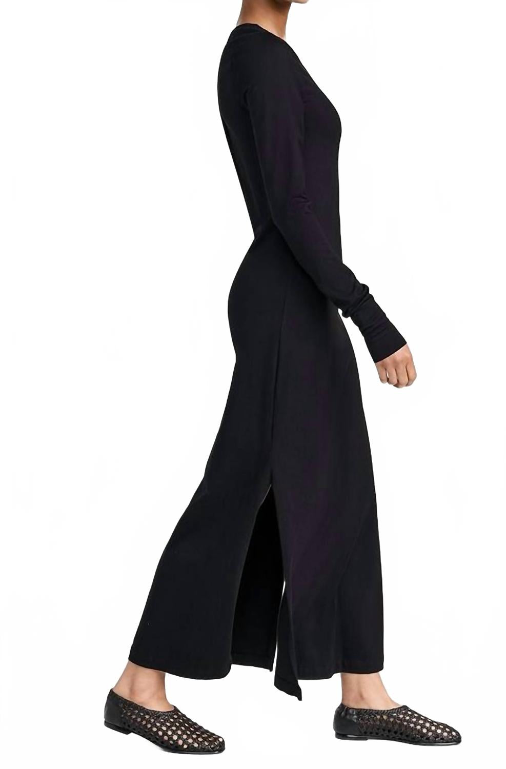 Кто не любит хорошее макси-платье? Это платье вы будете носить каждый сезон. Представляем макси-платье Lily с длинными рукавами от LES TIEN - изысканный выбор для вашего весеннего гардероба в классическом черном цвете. Это макси-платье, произведенное в США, имеет классический свободный силуэт и длину выше щиколотки. Платье изготовлено из роскошного трикотажного полотна, состоящего из 56% супимы, 38% модала и 6% спандекса. Оно отличается гладкой текстурой, манжетами шириной 10 см и контрастной шелковой окантовкой. Платье имеет открытый французский шов сзади и круглый вырез горловины, а также удобный дизайн для легкого надевания. Рекомендации по уходу: машинная стирка в щадящем режиме с изделиями схожих цветов и сушка в стиральной машине при низкой температуре.