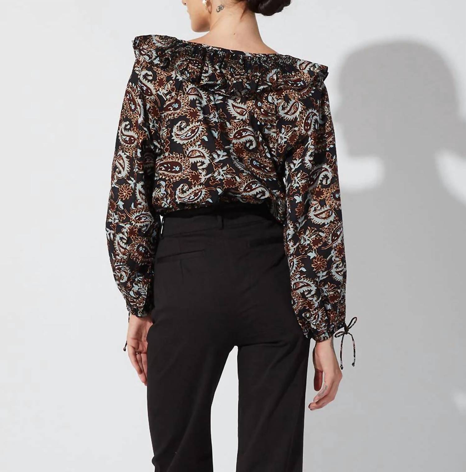 Универсальная блузка, которая подойдет и для работы, и для ужина! Откройте для себя блузку Jillian от Cleobella - потрясающее дополнение к вашему гардеробу. Она изготовлена ​​из 100% органического хлопка, сертифицированного GOTS, с восхитительным узором пейсли Avalon Block. Эта блузка с длинными рукавами, изготовленная вручную в Индии с соблюдением этических норм, имеет присборенный вырез с оборкой, что добавляет игривости ее классическому стилю. Застежка на пуговицы спереди, а манжеты рукавов на резинке для дополнительного комфорта. Инструкция по уходу: ручная стирка в холодной воде и сушка в разложенном виде на горизонтальной поверхности или химчистка. Рост модели: 178 см, размер XS, обхват груди: 102 см, талия: 51 см, длина от плеча до подола: 40 см.