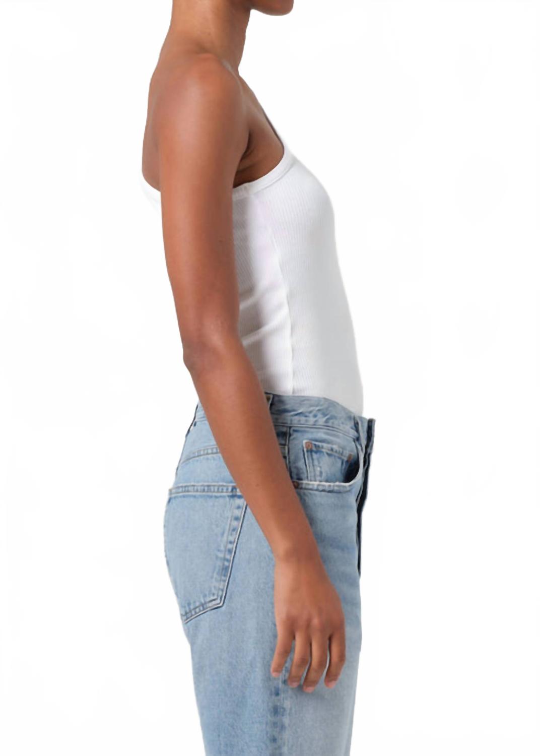 Посадка, ткань и функциональность. Эта майка отвечает всем требованиям. Представляем майку AGOLDE Verica - стильный дизайн без рукавов, идеально подходящий для современного гардероба. Эта майка на одно плечо изготовлена ​​из смеси 49% органического хлопка, 49% лиоцелла и 2% спандекса, что обеспечивает невероятно мягкое ощущение и поддерживающую рубчатую текстуру с превосходной фиксацией формы. Длина изделия составляет 23 дюйма, а элегантный фасон без застежек обеспечивает облегающий силуэт, который отлично смотрится как в составе многослойной одежды, так и отдельно. Эта универсальная белая майка, произведенная в США, легко поддается машинной стирке. Рост модели - 5 футов 10 дюймов, размер S - S, обхват груди - 24 дюйма, обхват груди - 26 1/2 дюйма.