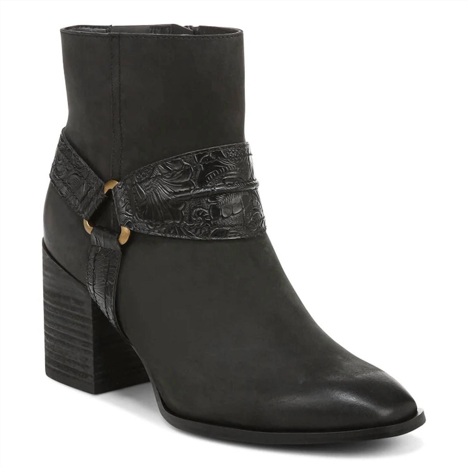 Вестерн-стиль сочетается с современной функциональностью. Эти ботинки из водоотталкивающей кожи классического черного цвета отличаются элегантной отделкой из тисненой кожи и удобным блочным каблуком высотой 8,5 см. Съемная тканевая стелька из ЭВА и прочная резиновая подошва обеспечивают комфорт и устойчивость, делая эти ботинки выше щиколотки универсальным выбором для любого случая. Идеально подходит для модницы, которая ценит стиль и практичность.