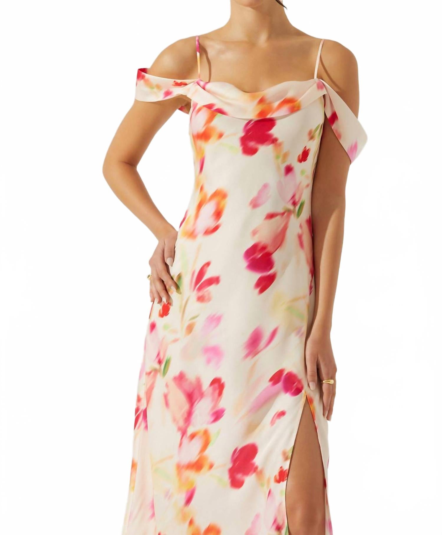 Представляем платье-макси Kitura от ASTR в завораживающем розовом акварельном цвете - изысканный выбор для вашего следующего званого ужина. Это элегантное платье-футляр с тонкими бретельками и отложными драпированными рукавами создает шикарный образ с открытыми плечами и воротником-хомутиком. Платье полностью изготовлено из 100% полиэстера и дополнено высоким разрезом на левой ноге до бедра для дополнительной привлекательности, а частичная подкладка обеспечивает комфорт там, где это необходимо. Застежка: надевайте. Уход: ручная стирка в холодной воде, сушить в разложенном виде, не сушить в стиральной машине и не гладить. На модели размер S (рост 168 см, обхват груди 88 см, талия 67 см).