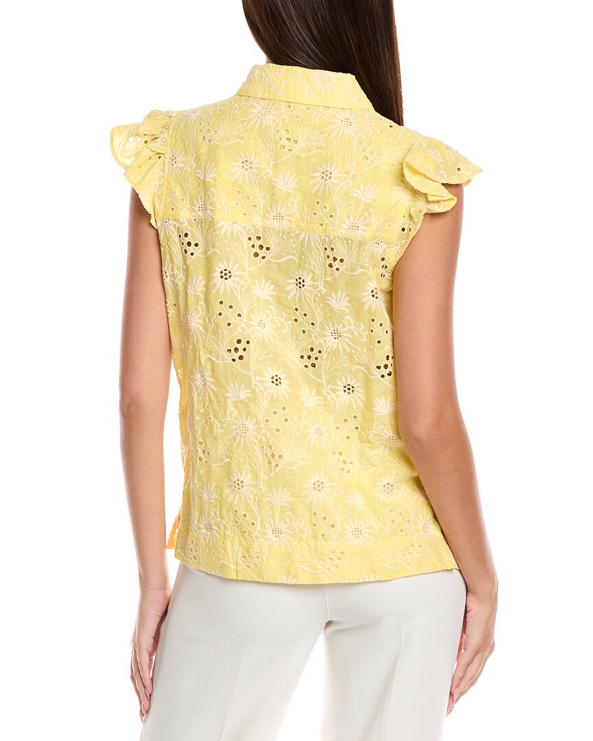 Представляем блузку T Tahari А-силуэта в цвете «Желтое небо» - универсальное дополнение к вашему гардеробу. Эта стильная блузка с отложным воротником и красивой цветочной вышивкой придает ей женственность и шик. Изготовленная из 100% хлопка, эта блузка удобна и проста в уходе, за ней можно стирать в стиральной машине. Застежка на пуговицы спереди добавляет классическую нотку этому современному изделию. Длина блузки от плеча до подола составляет около 60 см, что делает ее идеальным выбором для самых разных случаев. Рост модели - 188 см, на ней размер S, но обратите внимание, что размеры могут немного отличаться в зависимости от размера. Импортная и изготовленная с высоким качеством, эта блузка T Tahari - must-have для любой модницы.