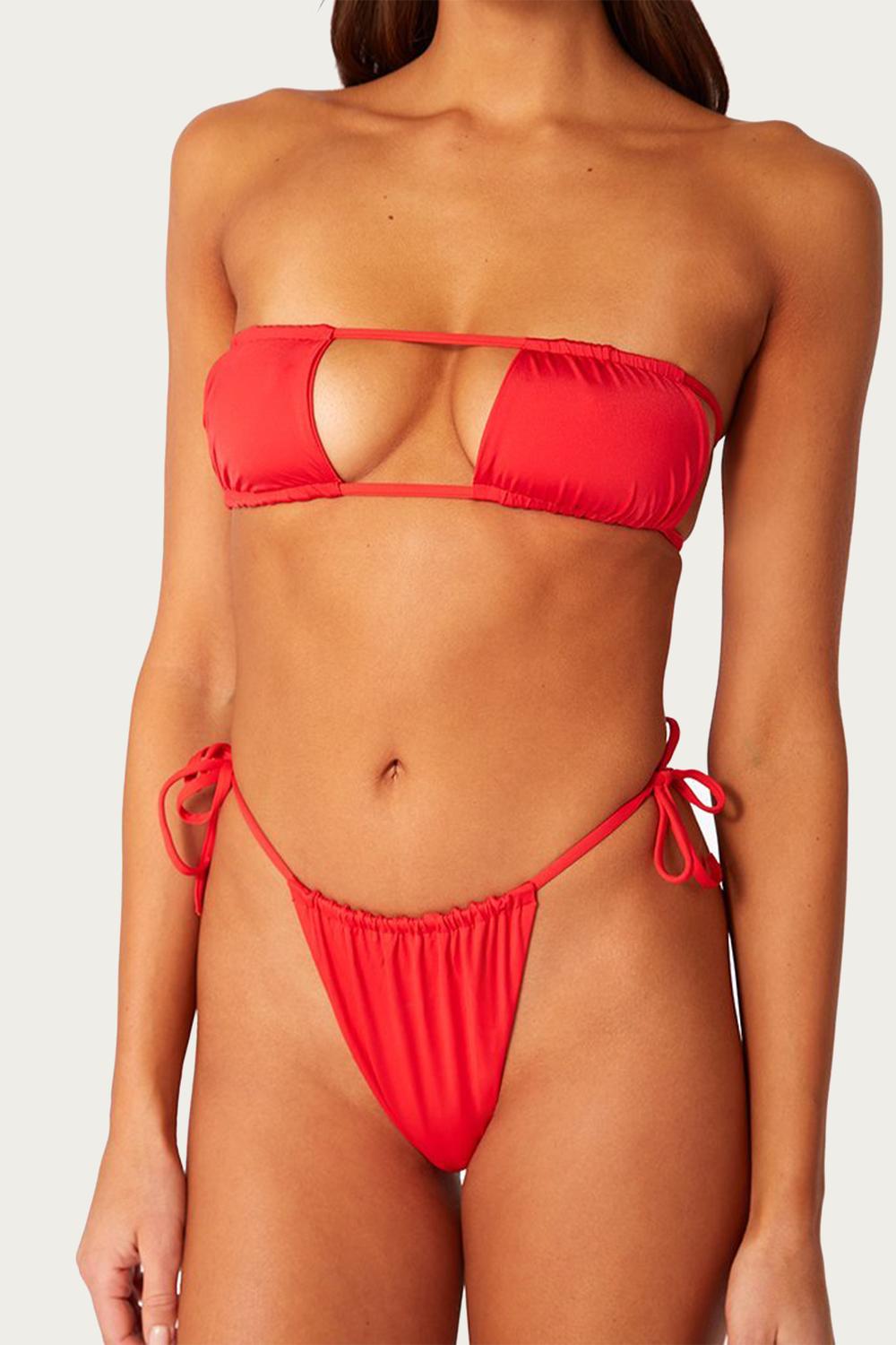 Плавки-бикини WeWoreWhat с соблазнительным высоким вырезом и ярким цветочным принтом. Они имеют регулируемый верх, который затягивается боковыми завязками и обеспечивает минимальную прикрытую зону. Наденьте их с подходящим топом Claudia, отдыхая у беседки.