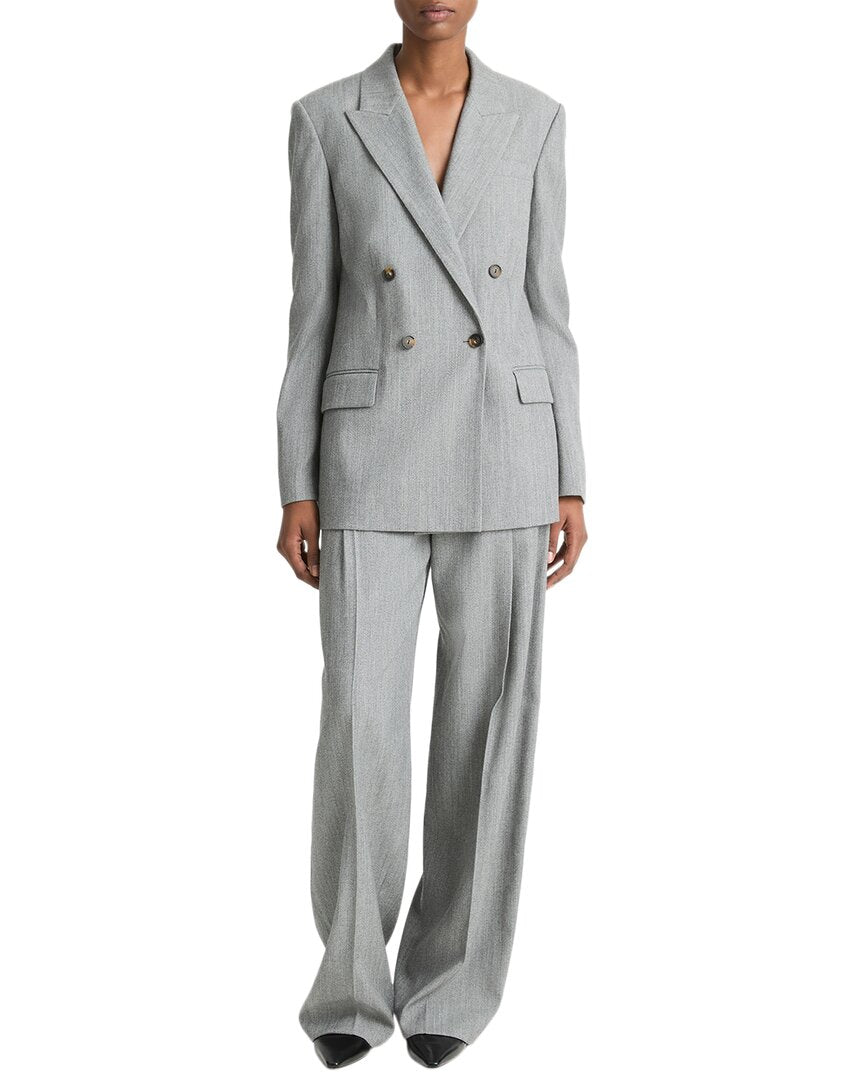 Винс Винс Вул-Бленд Твил Дабл Брестед Блейзер Vince, серый 30 675₽