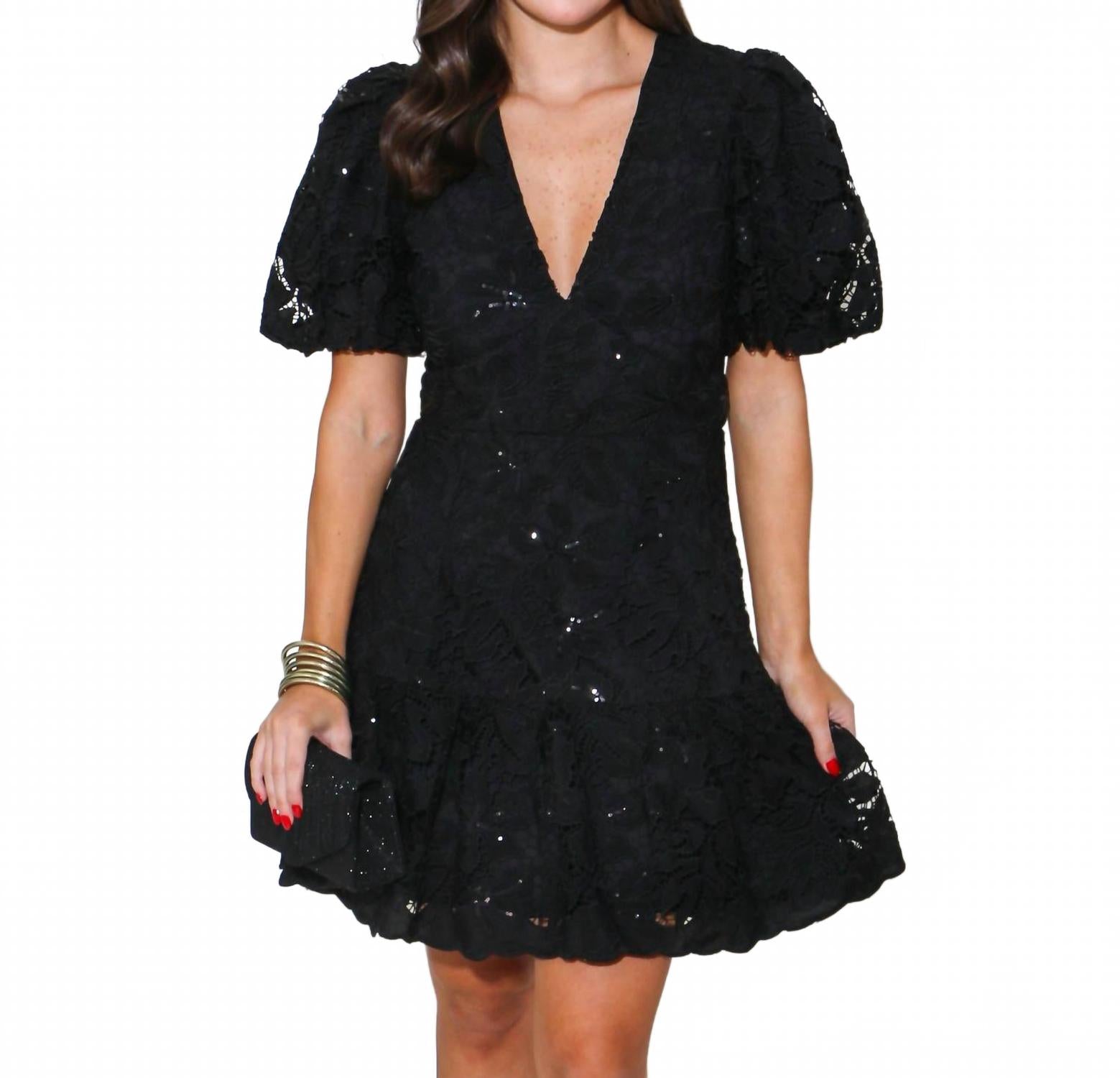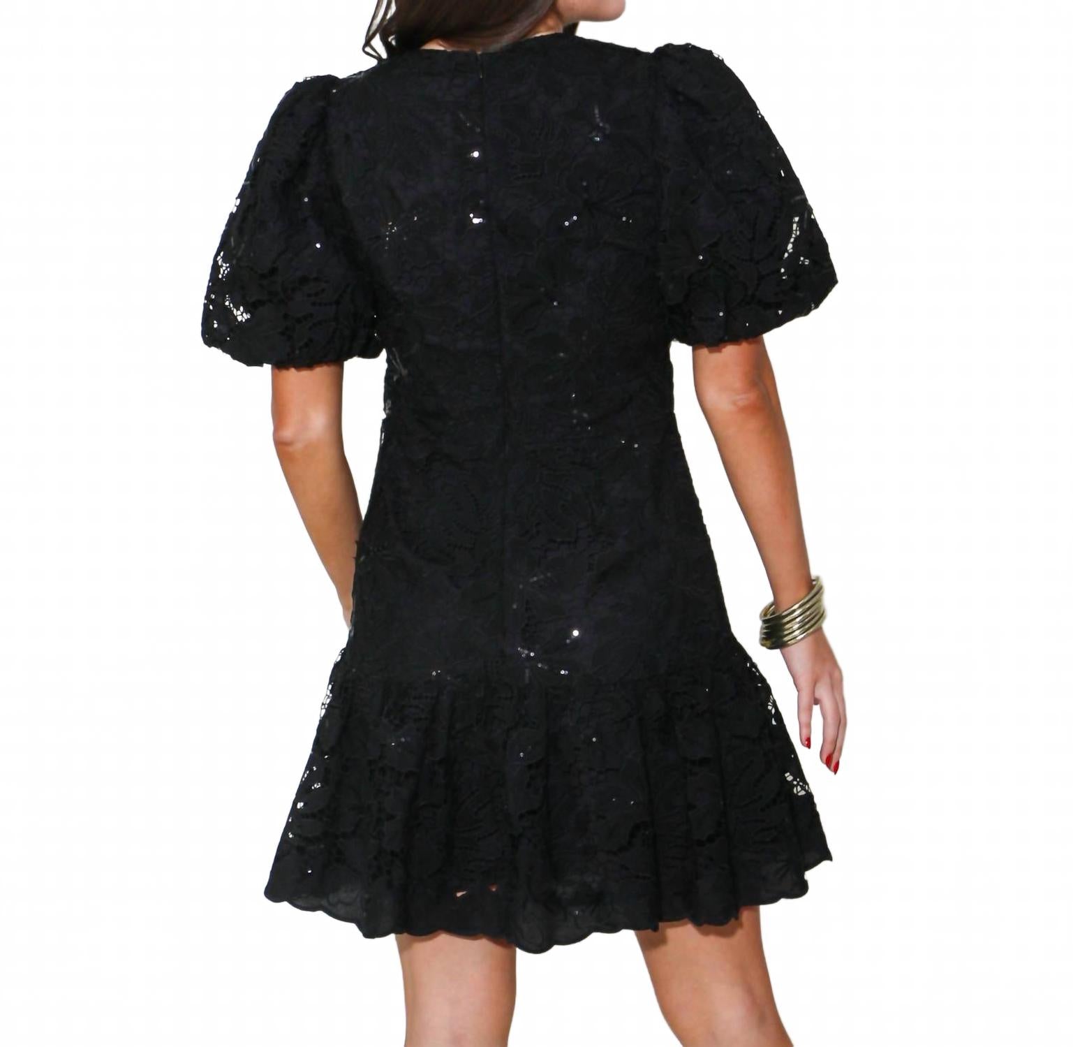 Черное мини-платье с пайетками и кружевом 2.7 AUGUST APPAREL