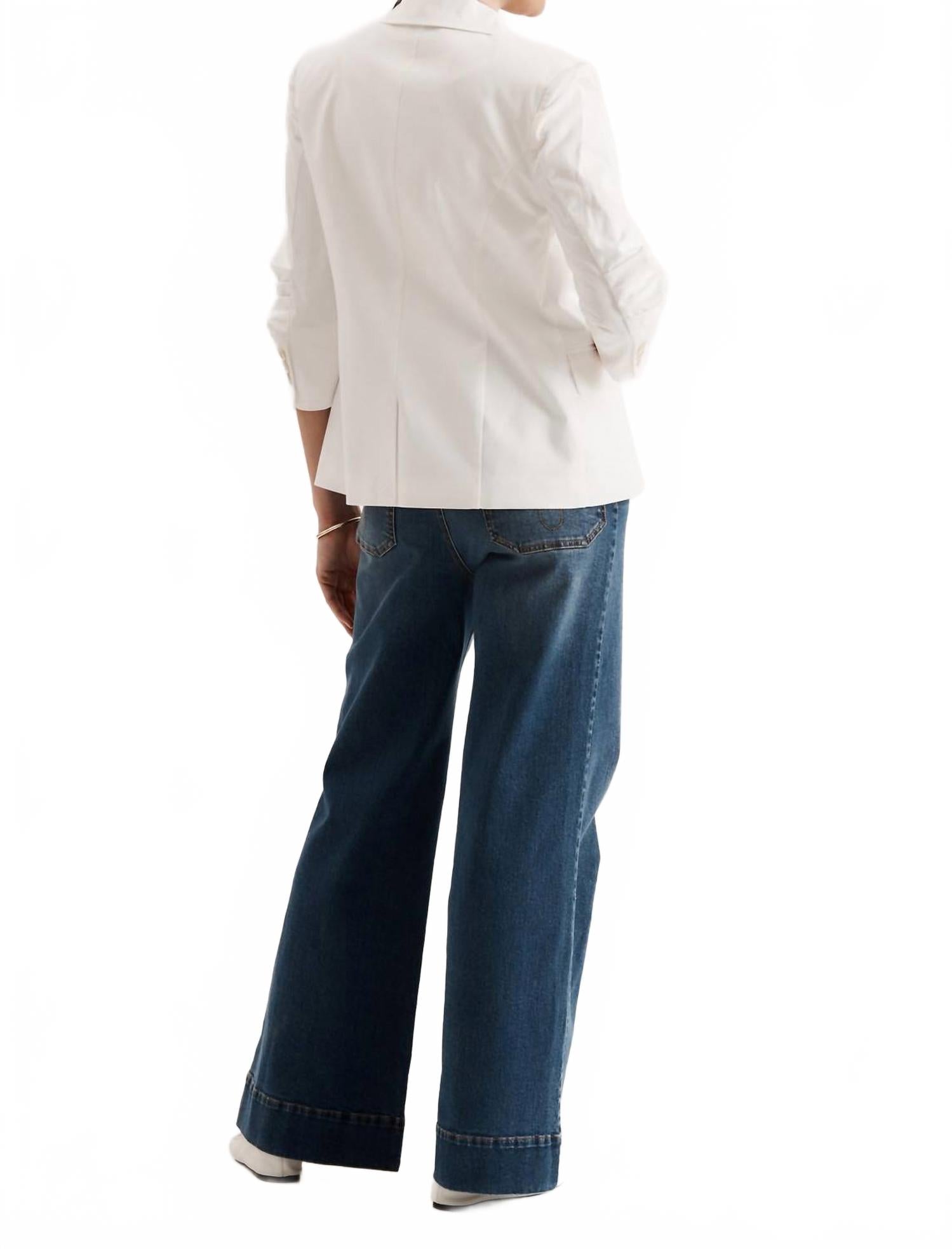 Добавьте изысканности в свой гардероб с помощью блейзера Taylor Stretch Jacket от Tyler Boe - изысканной модели белоснежного цвета, идеально подходящей для любого случая. Этот блейзер с рукавами три четверти, собранными в рюши, и воротником-стойкой отличается однобортным кроем и приталенным кроем, дополняемым застежкой на одну пуговицу. Верхний слой изготовлен из смеси 96% хлопка и 4% спандекса, а подкладка полностью выполнена из 100% полиэстера, что обеспечивает комфорт и стиль. Этот минималистичный блейзер длиной 66 см лучше всего чистить в химчистке. Рост модели 178 см, размер 4.