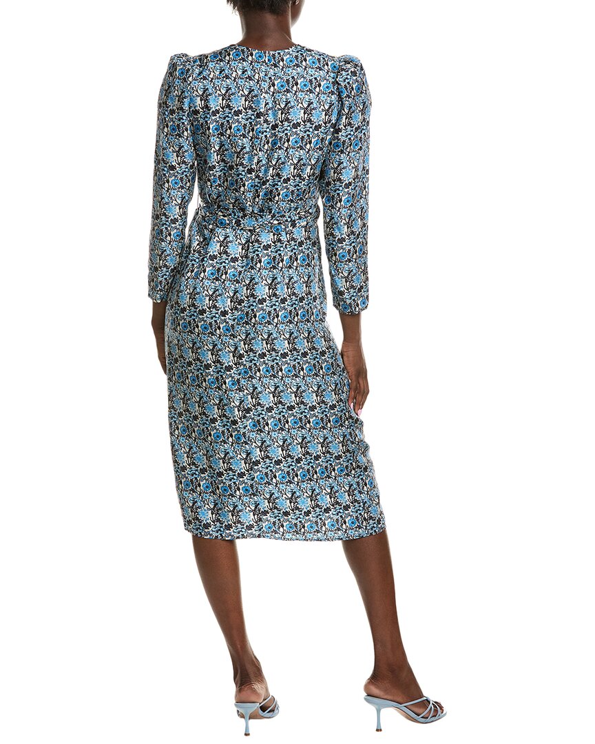 Сандра Платье-кимоно из шелка с рукавами-фонариками Sandro, синий