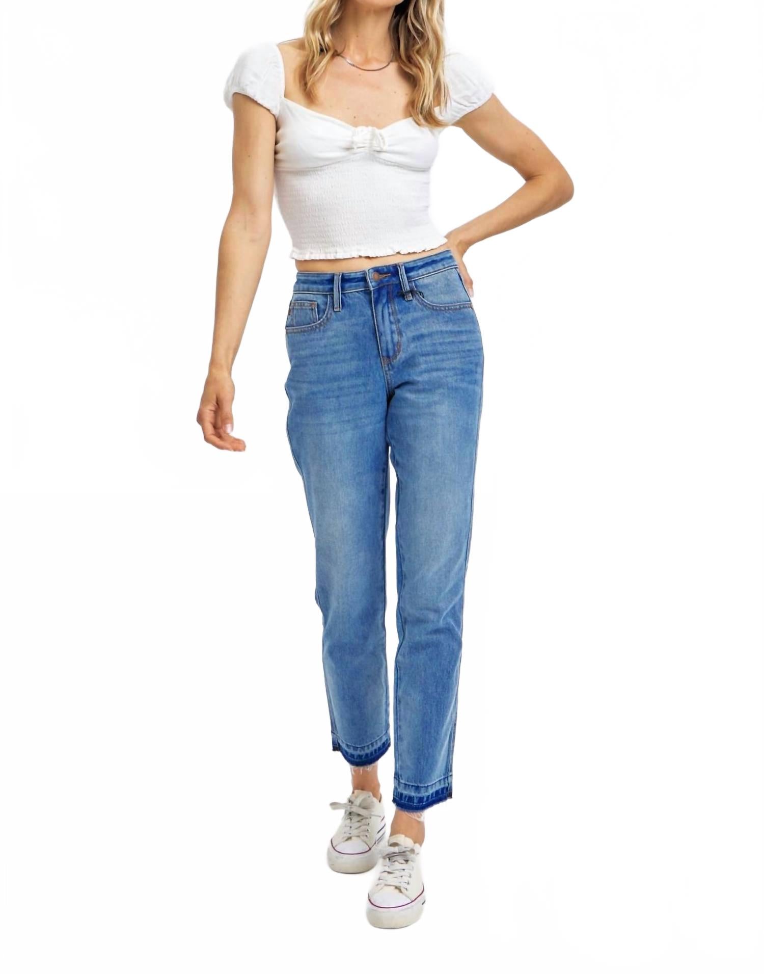 Откройте для себя джинсы бойфренда Judy Blue Rigid Magic Release Hem - идеальное сочетание стиля и комфорта для женщин. Благодаря средней посадке и уникальному крою Magic Release Hem, эти джинсы обеспечивают элегантную и свободную посадку. Изготовлены из прочного денима с однотонным рисунком и застегиваются на пуговицы для надежной посадки. Удобные карманы. Для ухода достаточно машинной стирки и машинной сушки. Размеры включают посадку спереди 30 см и внутренний шов 71 см, что идеально подходит для повседневного, модного уличного образа.