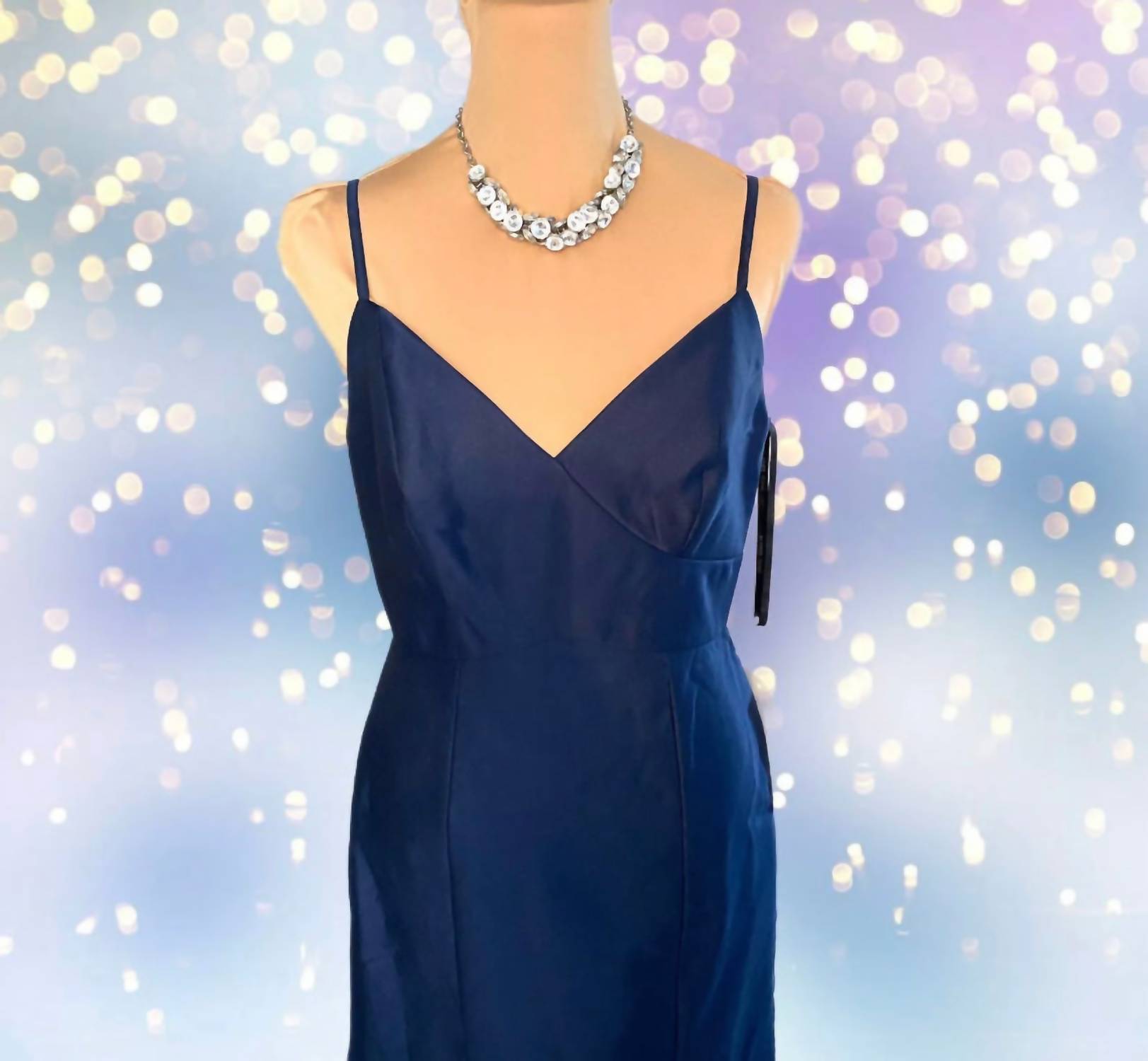 Просто добавьте милый маленький клатч и подходящий каблук, и образ будет идеальным для мероприятия. Представляем платье Alfred Sung Gown Maxi Length Spaghetti Strap Dress в изысканном темно-синем цвете, идеально подходящем для торжественных случаев, таких как выпускной бал или свадьба. Это изящное платье с изящными бретельками, V-образным вырезом и завышенной талией, подчеркивающей женственность силуэта. Платье из 100% полиэстерового атласного твила отличается красотой и долговечностью. Платье дополнено юбкой-трубой во всю длину и тонким боковым разрезом. Платье родом из Таиланда, застегивается на молнию и требует химчистки для сохранения своего роскошного вида. Длина платья составляет 60 дюймов.