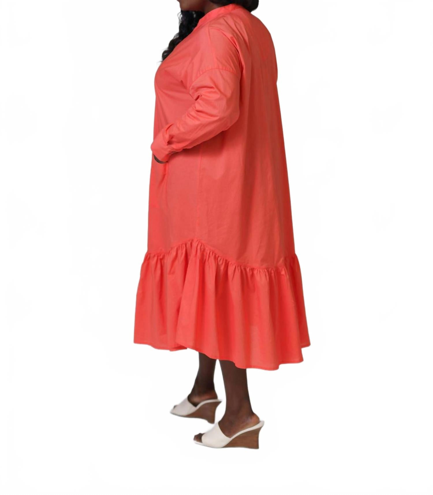 Платье миди настолько универсально, что варианты его ношения безграничны. Платье Core Cotton от Bitte Kai Rand - стильное и универсальное дополнение к любому гардеробу. Платье представлено в ярком оранжевом оттенке. Это платье-рубашка миди с длинными рукавами и V-образным вырезом, подчеркивающим фигуру, сочетает в себе простой силуэт с эффектным оборчатым подолом. Платье изготовлено из однотонного льна с узором, отличается функциональностью благодаря карманам и классической застежке на пуговицы. Рекомендуется ручная стирка и сушка на веревке. Это платье plus-size идеально подходит для путешествий или сезонной работы, оно легко перейдет от повседневных выходов в свет до праздничных случаев.
