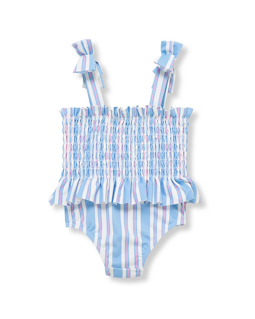 Представляем купальник Habitual Smocked Garden Swim для девочек - идеальное дополнение к летнему гардеробу. Этот очаровательный купальник со сборками и ярким разноцветным полосатым узором сочетает в себе стиль и защиту от солнца благодаря коэффициенту защиты UPF 50+. Этот купальник, изготовленный из 87% нейлона и 13% спандекса, удобен для ношения в течение всего дня и прост в уходе благодаря материалам, допускающим машинную стирку. Благодаря свободному крою, девочке не составит труда надеть его, и она сможет полностью сосредоточиться на отдыхе на солнце. Этот купальник Habitual, импортируемый из других стран и готовый к пляжу или бассейну, - настоящая находка для любой маленькой модницы.