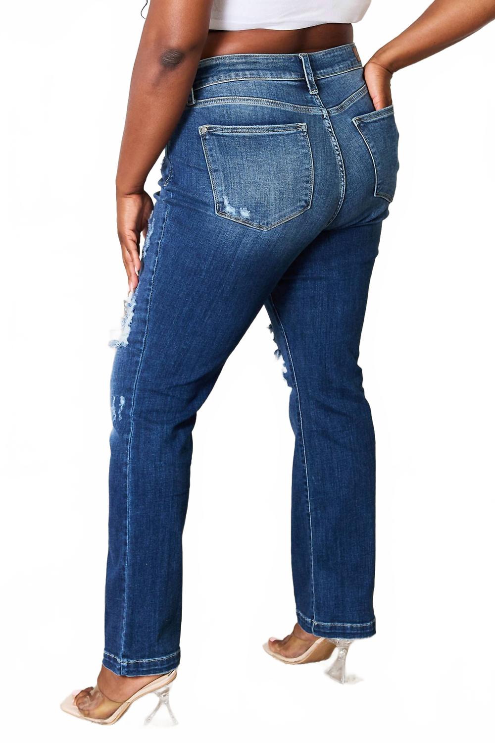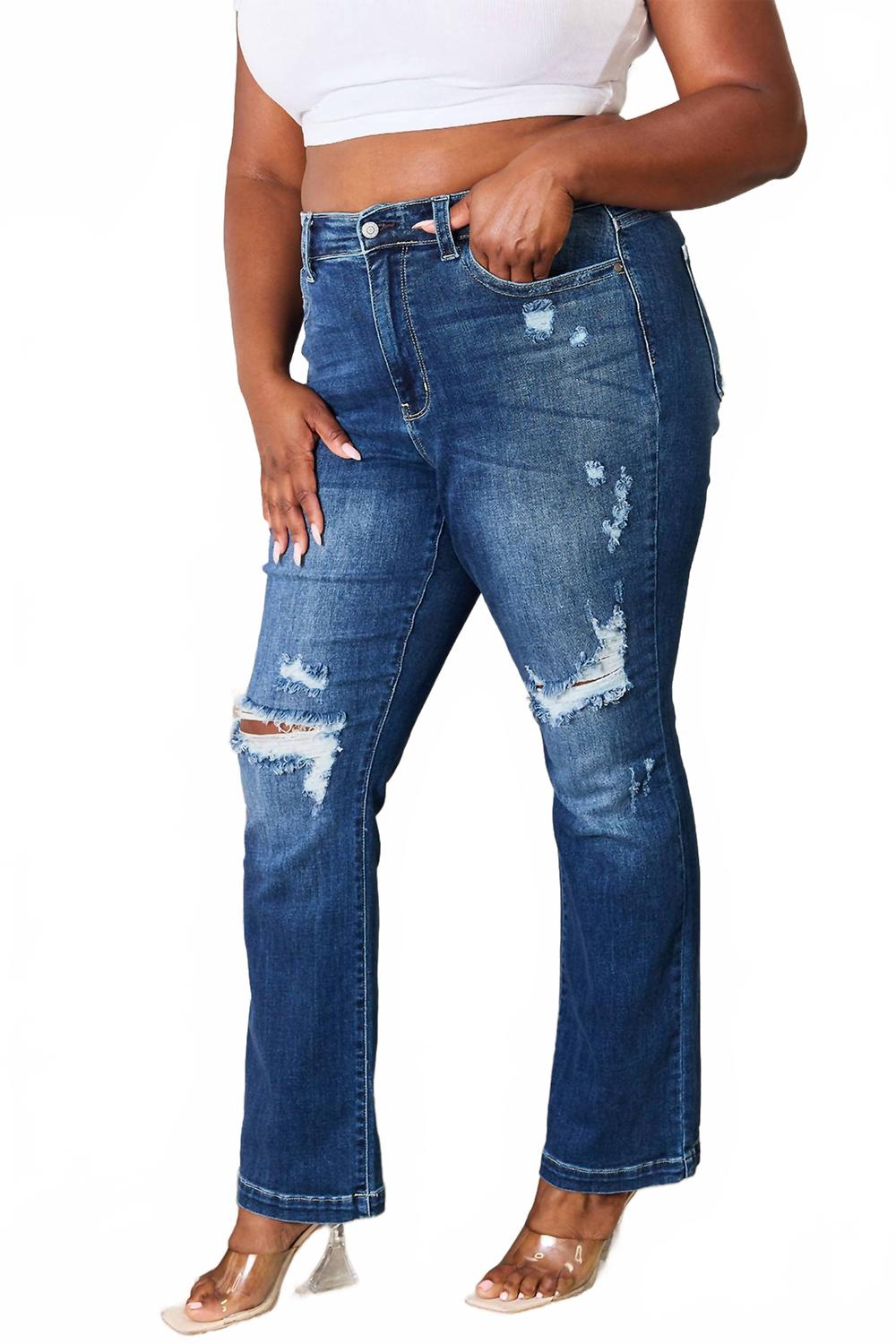 Средние джинсы-ботинки с эффектом потертостей в темном цвете Judy Blue, Dark