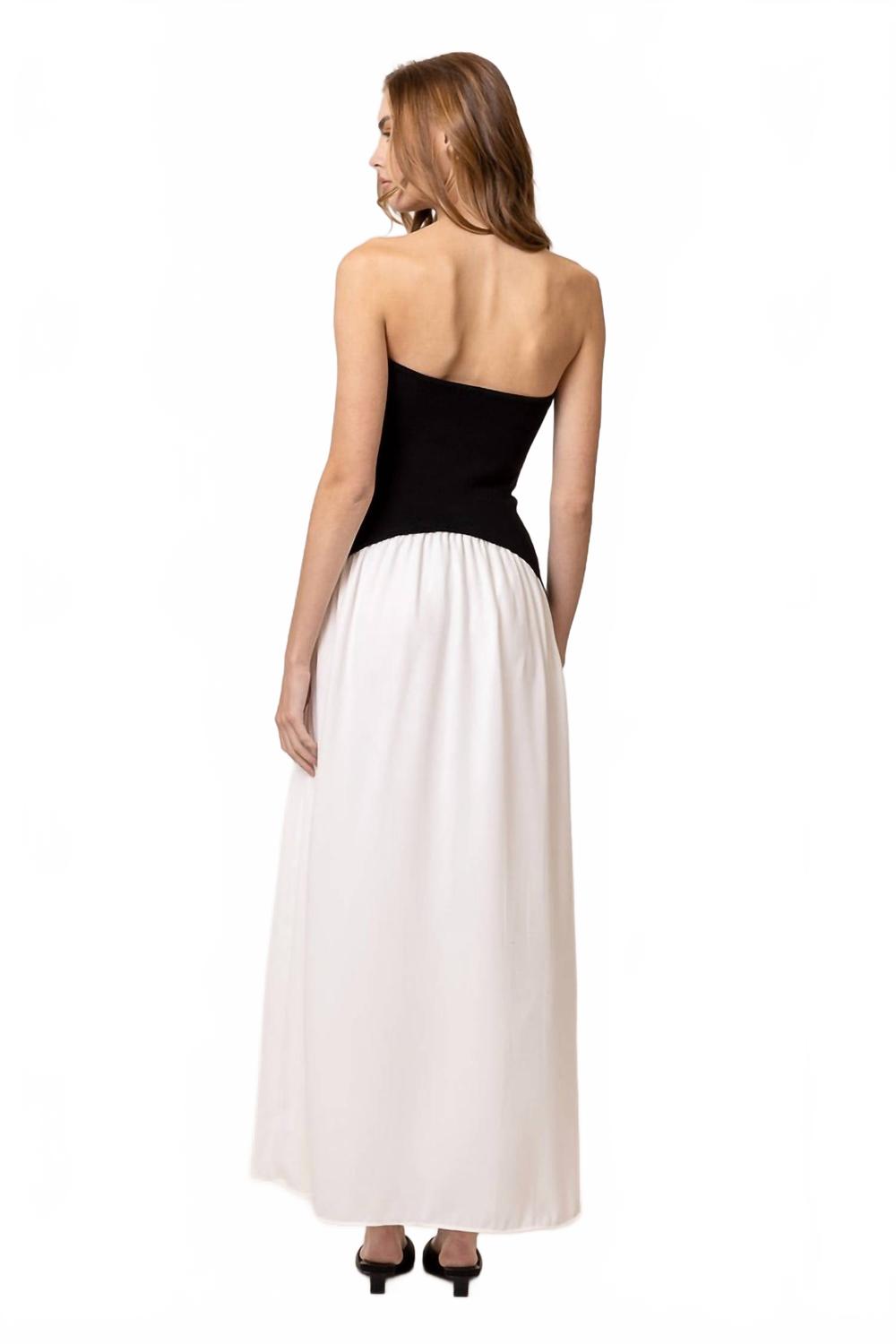 Кто не любит хорошее макси-платье? Это платье вы будете носить с собой из сезона в сезон. Дополните свой образ для званого ужина платьем Saloma Mix Media Maxi Dress от Line and Dot - эффектным черно-белым изделием, идеально подходящим для весны. Это платье без бретелек с трикотажным лифом-свитером для облегающей посадки дополняет струящаяся юбка на подкладке элегантного А-образного силуэта. Платье изготовлено из 50% вискозы, 28% полиэстера и 22% нейлона, с контрастной отделкой и подкладкой из хлопка и смеси полиэстера и спандекса, что обеспечивает комфорт и гибкость. Застегивается легко благодаря конструкции, которую легко стирать в стиральной машине. На модели размер S, рост 178 см.