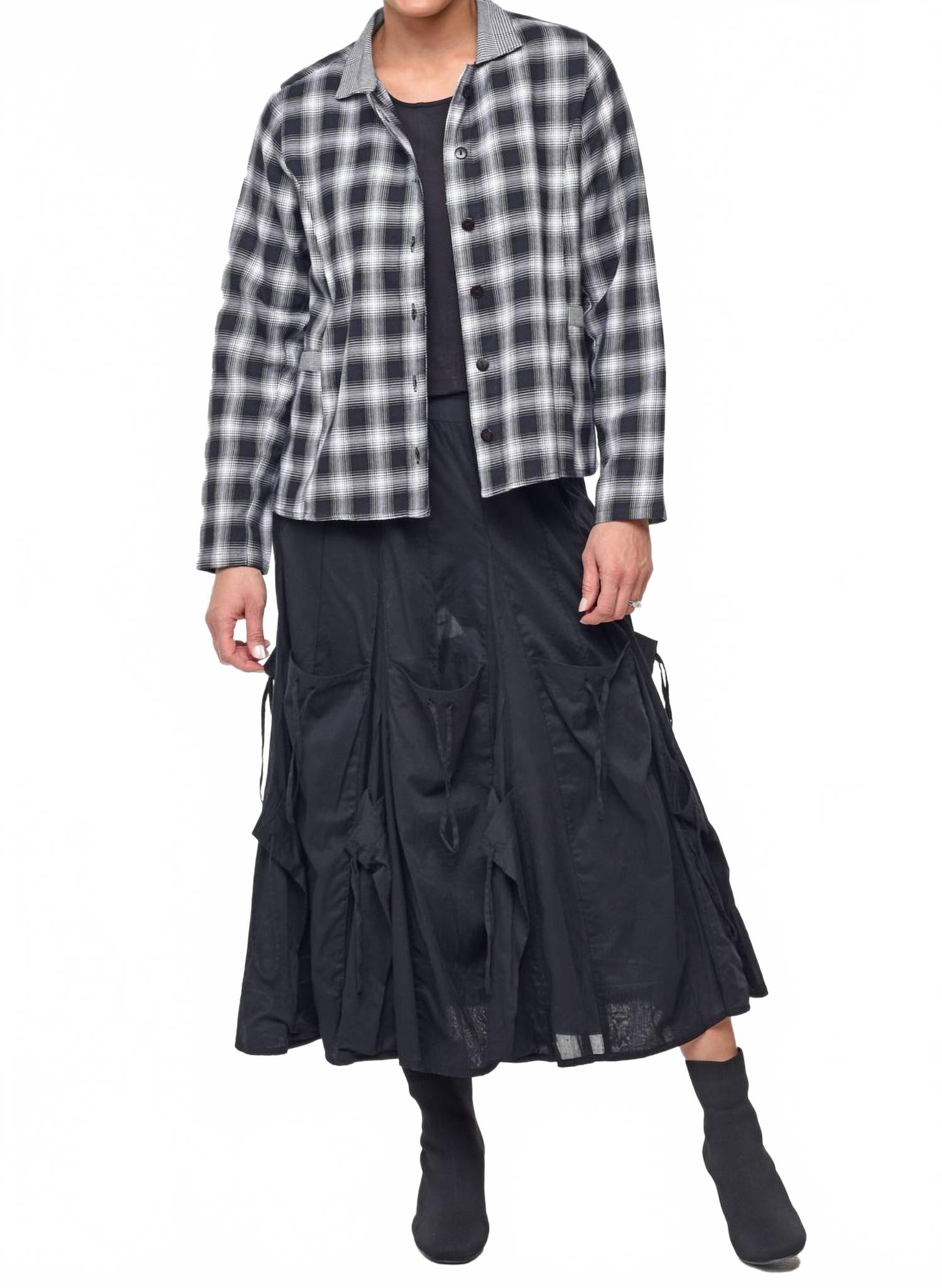 Милая, повседневная и удобная. Эта куртка просто необходима. Представляем куртку Louise от Tulip Clothing - шикарное дополнение к любому гардеробу благодаря клетчатому узору Blake Plaid, идеально подходящему для весеннего образа в стиле преппи. Эта повседневная женская куртка с длинными рукавами, воротником-стойкой и длиной до бедер (23,5 дюйма для размера XS) дополнена передними карманами для дополнительной функциональности. Изготовленная из 100% хлопка, она застегивается на пуговицы и проста в уходе: можно стирать в стиральной машине и сушить на веревке. Куртка представлена ​​в размерах от XS до XXL и идеально подходит для праздничных вечеринок или повседневных стильных прогулок.