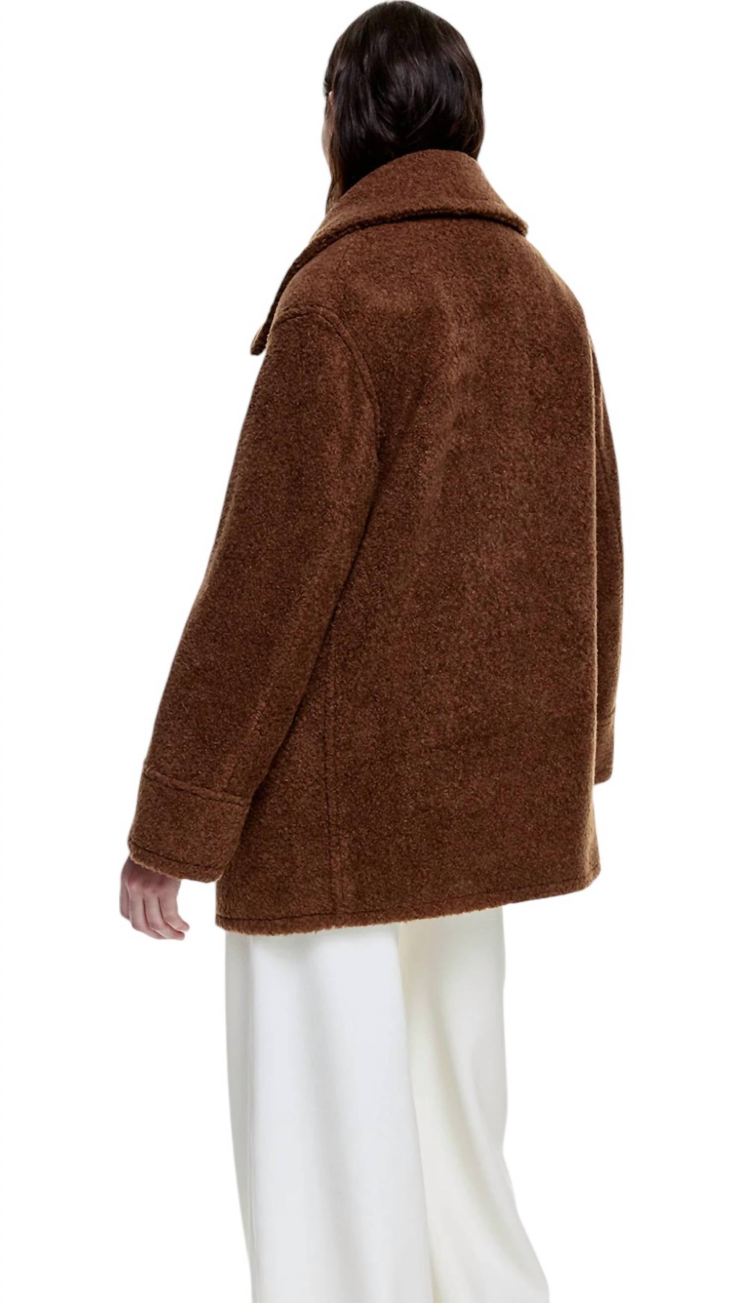 Представляем пальто Teddy Car Coat от Smythe - роскошное дополнение к вашему зимнему гардеробу насыщенного каштанового оттенка. Это пальто с длинными рукавами изготовлено из 55% акрила, 30% полиэстера и 15% шерсти с текстурой искусственной овчины, идеально подходящей для многослойного ношения. Асимметричный прорезной карман, широкие лацканы и удобная застежка на кнопку делают его одновременно модным и функциональным. Подкладка пальто выполнена из 100% экологически чистого и биоразлагаемого вискозного волокна Cupro. Для сохранения его первозданного состояния рекомендуется химчистка.