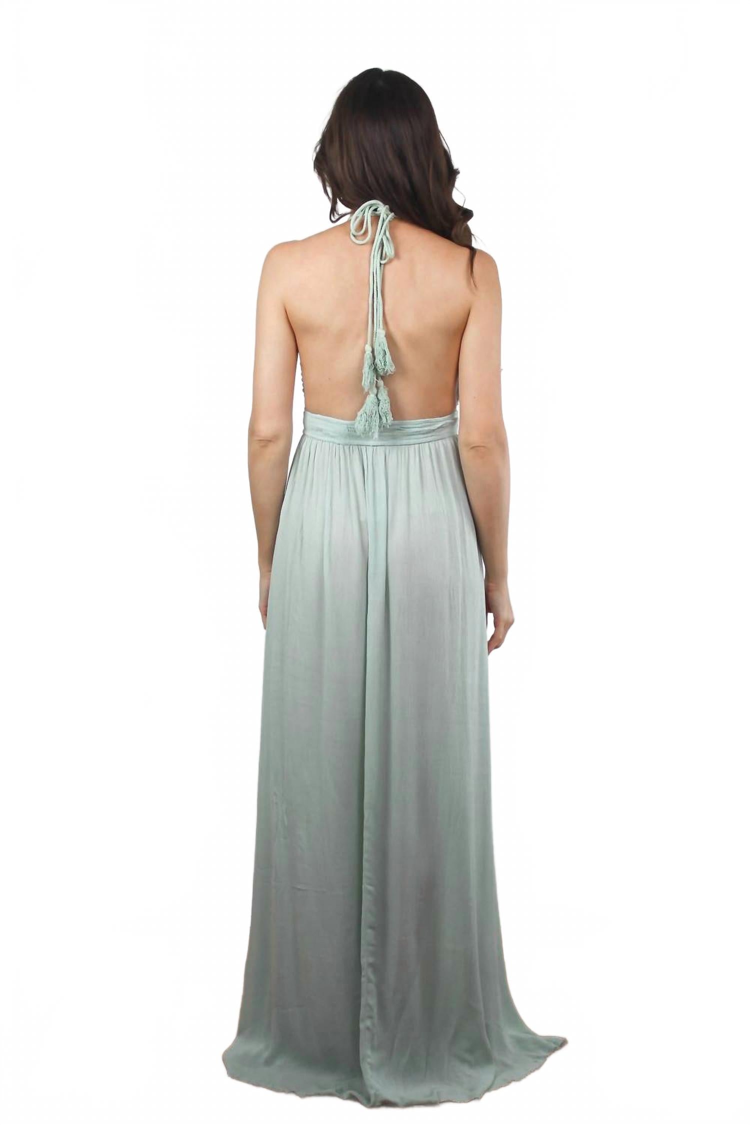 Платье макси, столь же милое, сколь и удобное. Ощутите непринужденную элегантность в платье макси Olivia от Wishlist, которое станет потрясающим дополнением к любому весеннему гардеробу. Это платье макси без рукавов освежающего оттенка морской пены с вырезом халтер и завязкой с кисточками, создающей утонченный образ. Платье изготовлено из 100% вискозы с деталями, связанными крючком из 100% хлопка. Оно сочетает в себе комфорт и изысканный дизайн, подчеркнутый эластичным бюстом и разрезом спереди. Это платье А-силуэта идеально подходит для свадебных торжеств. Лиф платья отделан крючком, а его частичная подкладка придает ему изысканности. Инструкция по уходу: бережная ручная стирка.