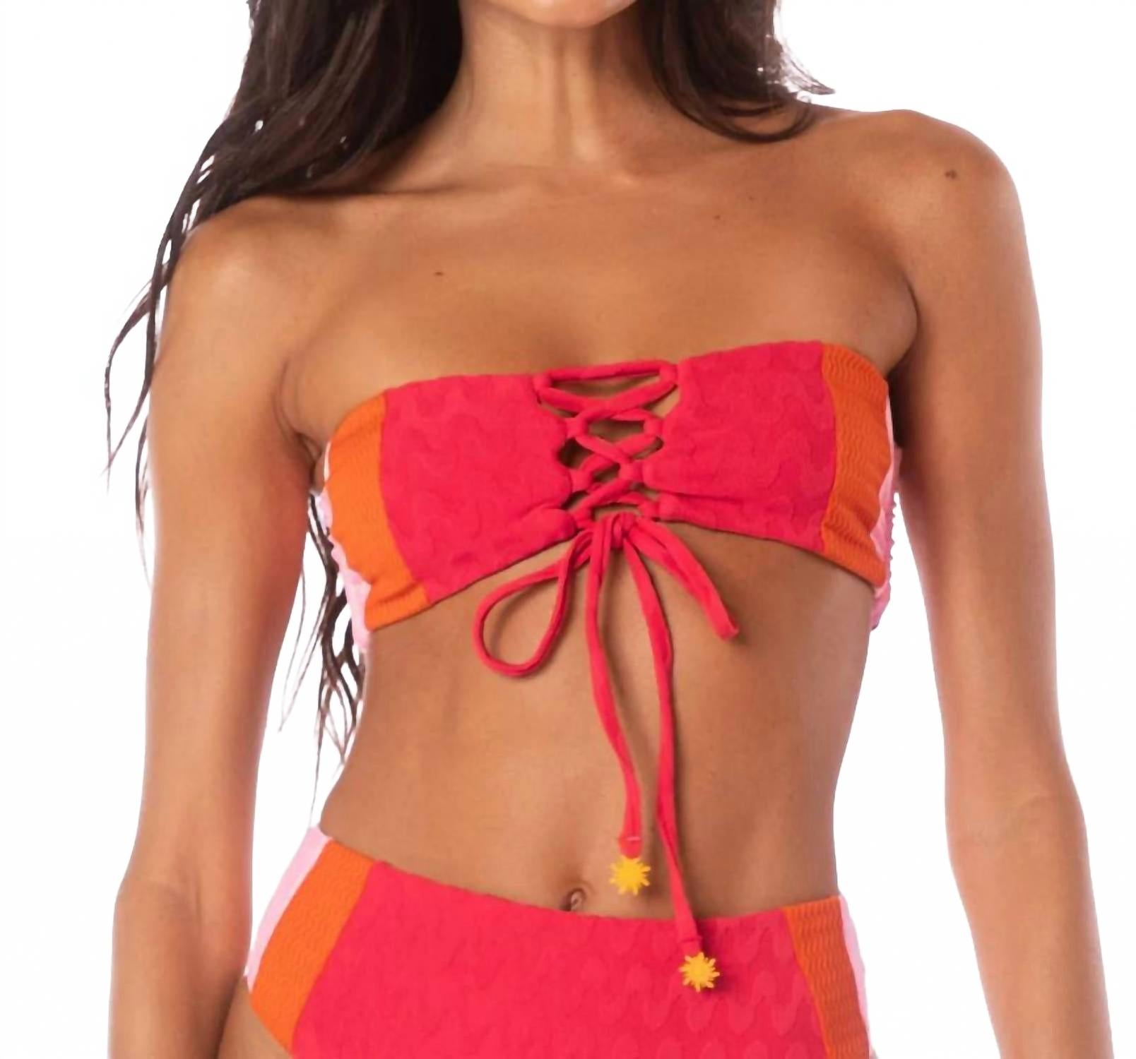 Универсальная модель, идеально подходящая для пляжного гардероба. Двусторонний бикини-топ средней степени закрытости, который можно носить разными способами. Он оснащен съемными бретельками и мягкими чашечками для индивидуальной регулировки поддержки. Сделано в Колумбии. Обеспечивает среднюю поддержку благодаря поддерживающим косточкам по бокам и стильной шнуровке сзади. Состав: 60% полиамид, 26% переработанный полиамид, 14% спандекс. Ручная стирка, сушить на открытом воздухе. На модели размер S.