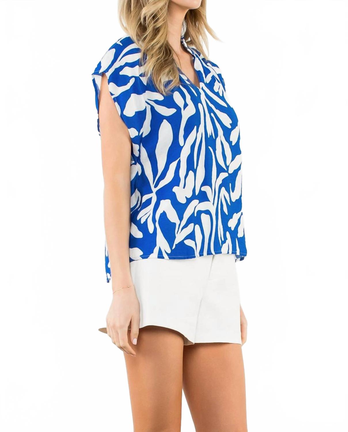 Топ Rena с геометрическим принтом в сине-белой гамме THML