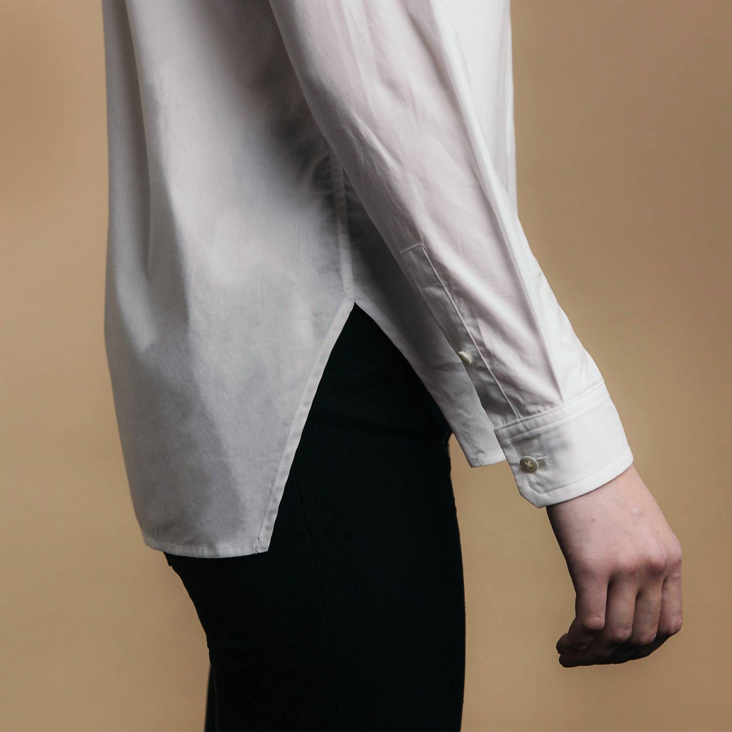 Отличная посадка, милый дизайн, мягкая ткань. Вам понравится все в этой футболке с длинным рукавом. Рубашка Trapezoid Shirt от Thirteen Seven - классическая рубашка с длинным рукавом безупречного цвета Paper White, изготовленная из 100% японского гребенного хлопка для превосходной посадки. Уникальный дизайн включает в себя вытачки на груди для приталенного силуэта, потайные пуговицы сзади и пуговицы из натуральной ракушки, которые предотвращают появление дыр. Рубашка также имеет потайную планку, плоскую складку сзади и белую репсовую ленту под планкой, сочетая стиль с практичностью. Уход: машинная стирка в теплой воде, сушка в тени, глажка по мере необходимости или химчистка.