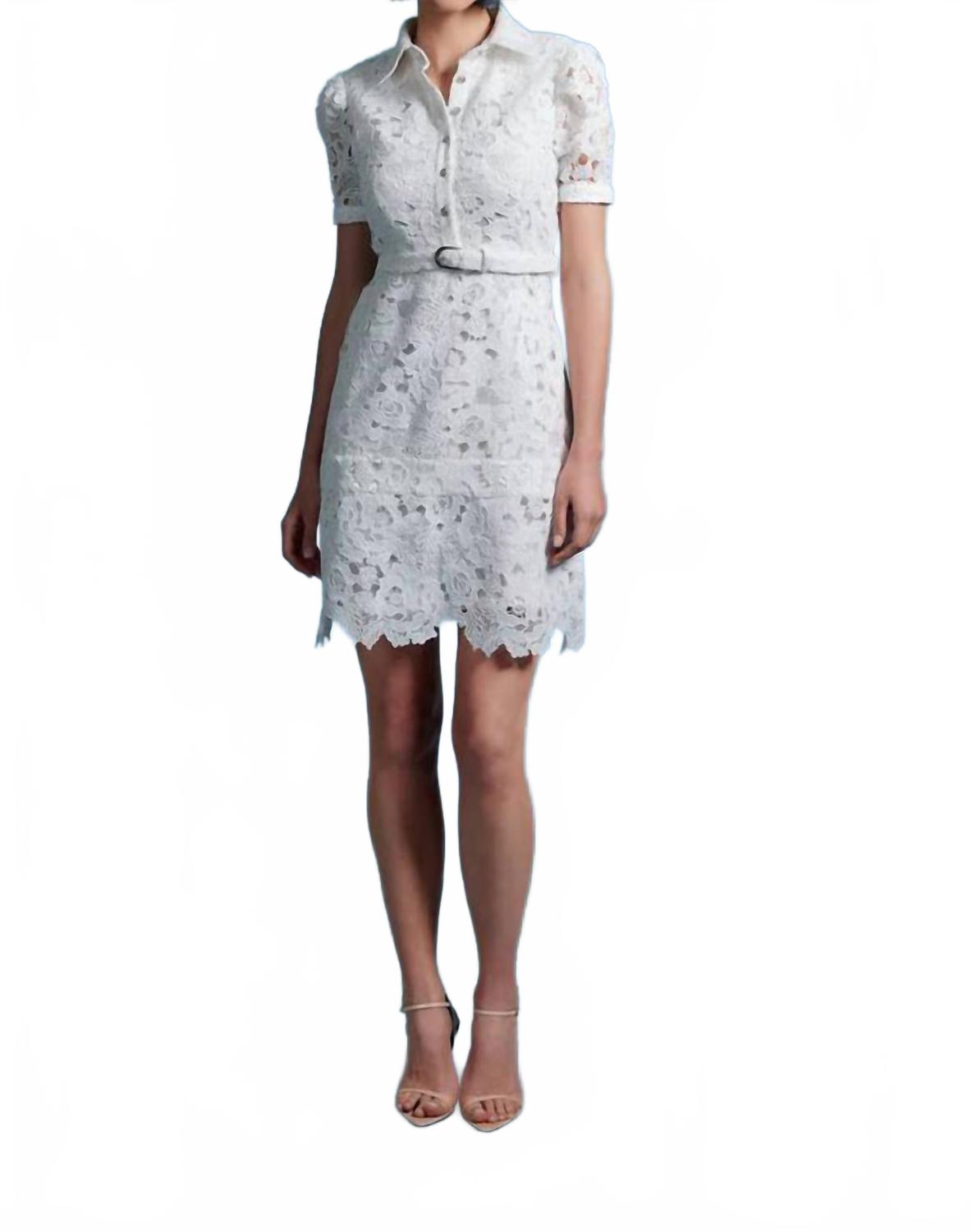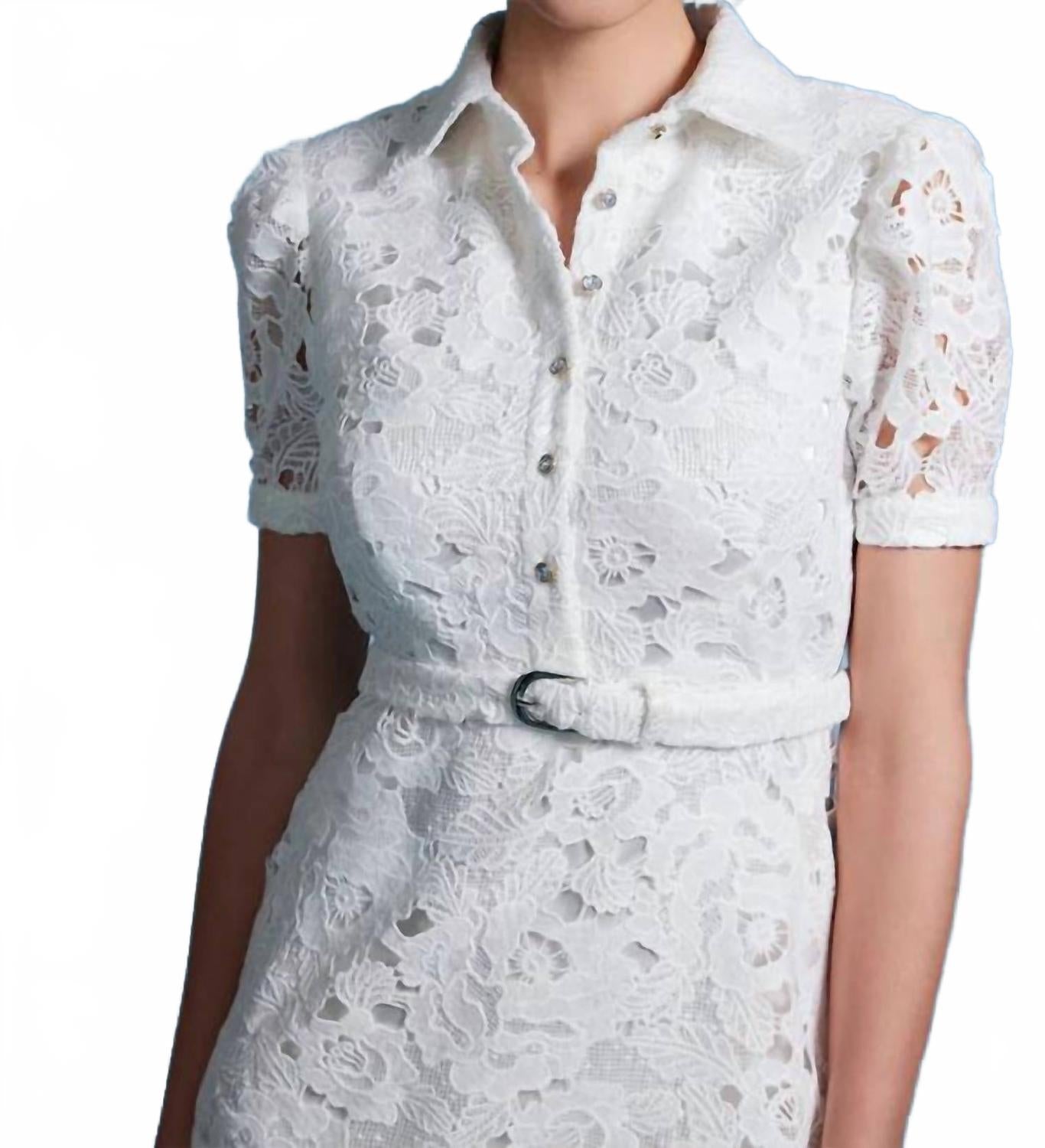 Легкое и элегантное платье, которое вы будете носить круглый год. Откройте для себя платье из гипюрового кружева от Sasha+Z - потрясающее дополнение к любому гардеробу в элегантном белом цвете. Это платье-футляр, неподвластное времени, с короткими рукавами и изысканным воротником, идеально подходит для летних ужинов или празднования Дня благодарения. Платье изготовлено из 100% полиэстера с текстурированной кружевной накладкой, имеет молнию сбоку для удобства ношения и съемный пояс для индивидуального подбора. Застежка - сверкающие кристальные пуговицы. Это платье, идеально подходящее для создания атмосферы сдержанной роскоши, станет незаменимым аксессуаром для особых случаев.