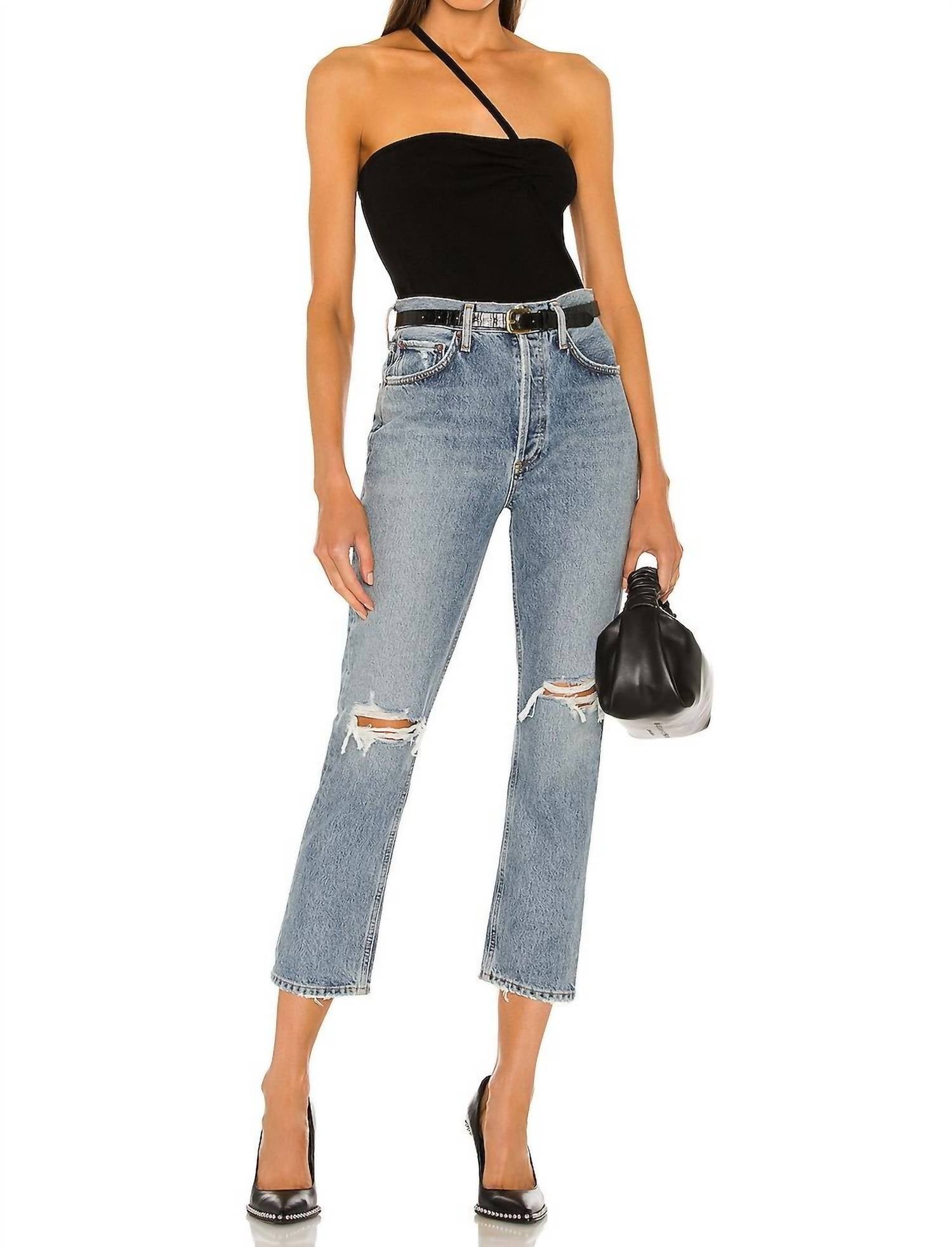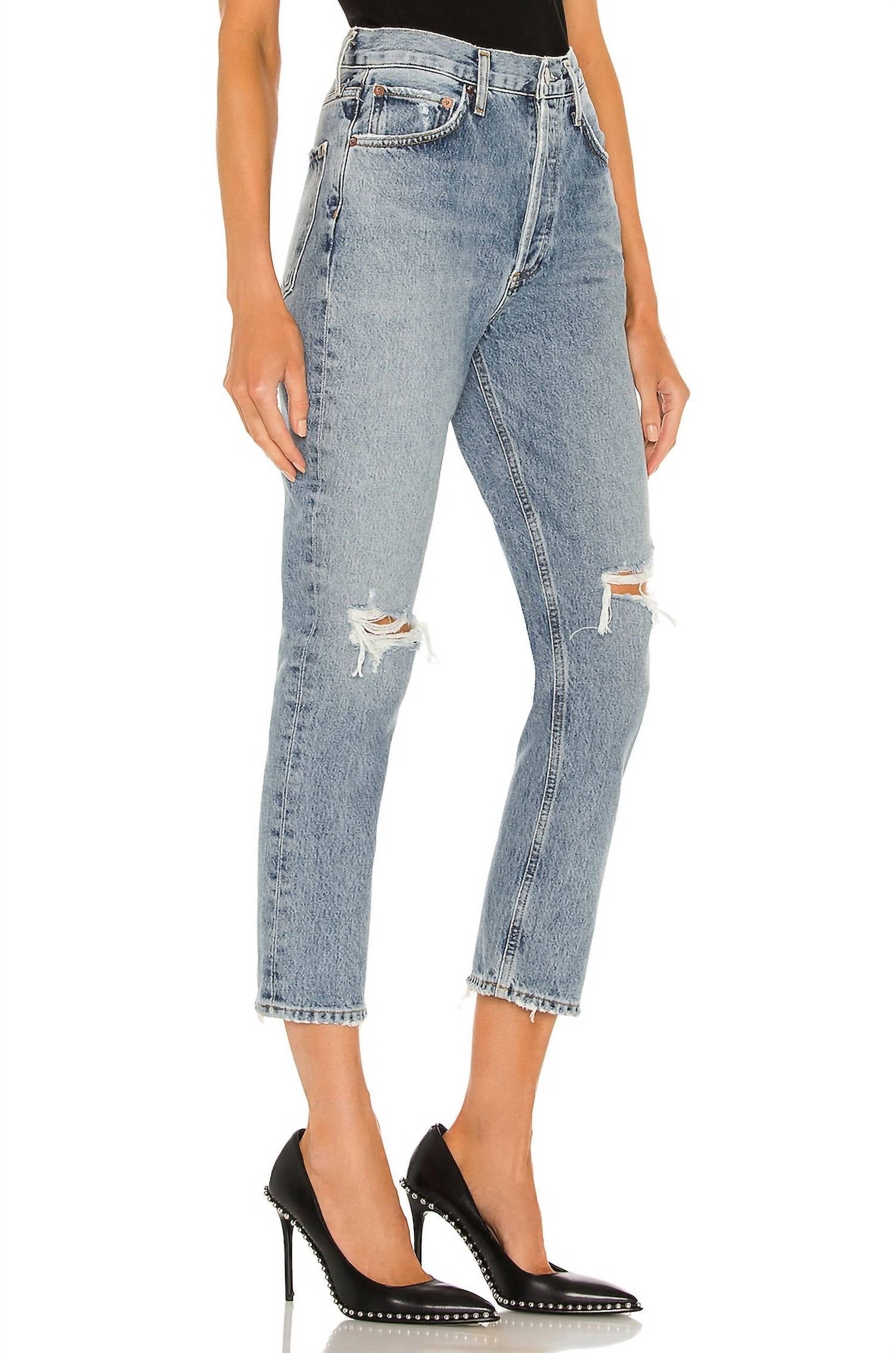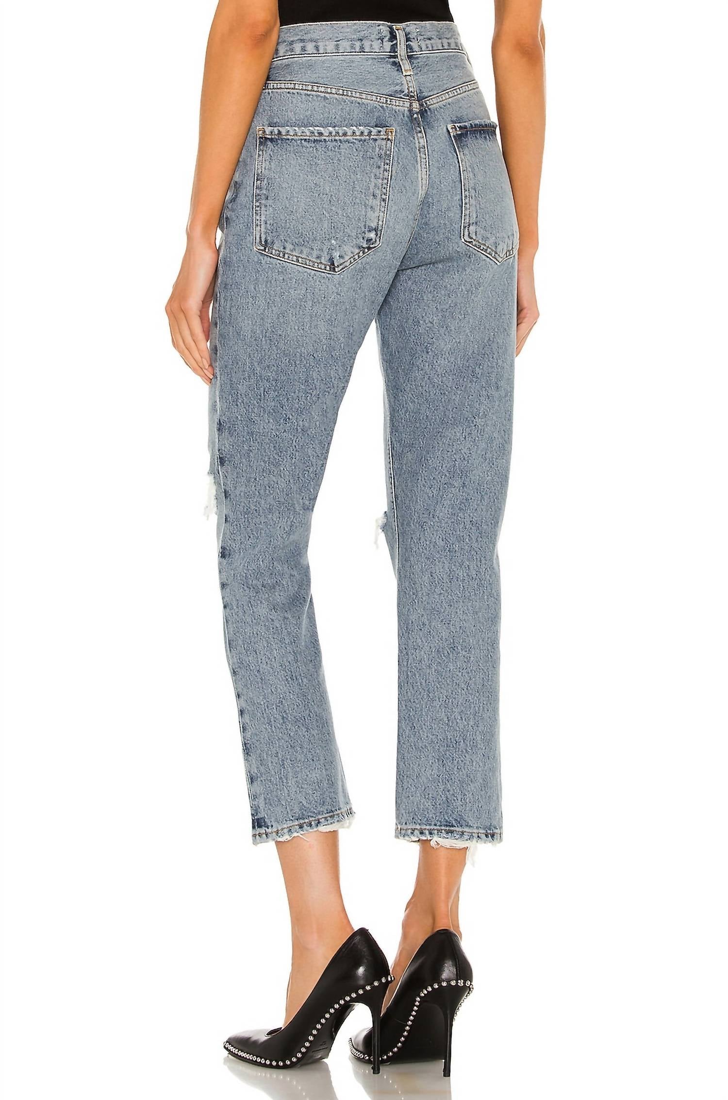 Представляем укороченные джинсы Riley High Rise Crop от AGOLDE в цвете Escalate - идеальное сочетание стиля и комфорта. Эти джинсы отличаются классической высокой посадкой и прямым кроем, что делает их незаменимым предметом уличной моды на любой случай. Изготовленные из 100% органического хлопка, они не тянутся, имеют винтажный оттенок индиго средней плотности и подчеркивают фигуру. Застежка на пуговицы обеспечивает удобство ношения, а укороченный внутренний шов 66 см и брючины 35 см создают универсальный силуэт. Уход за этими джинсами прост: рекомендуем стирать в стиральной машине. На модели рост 175 см, размер 27.