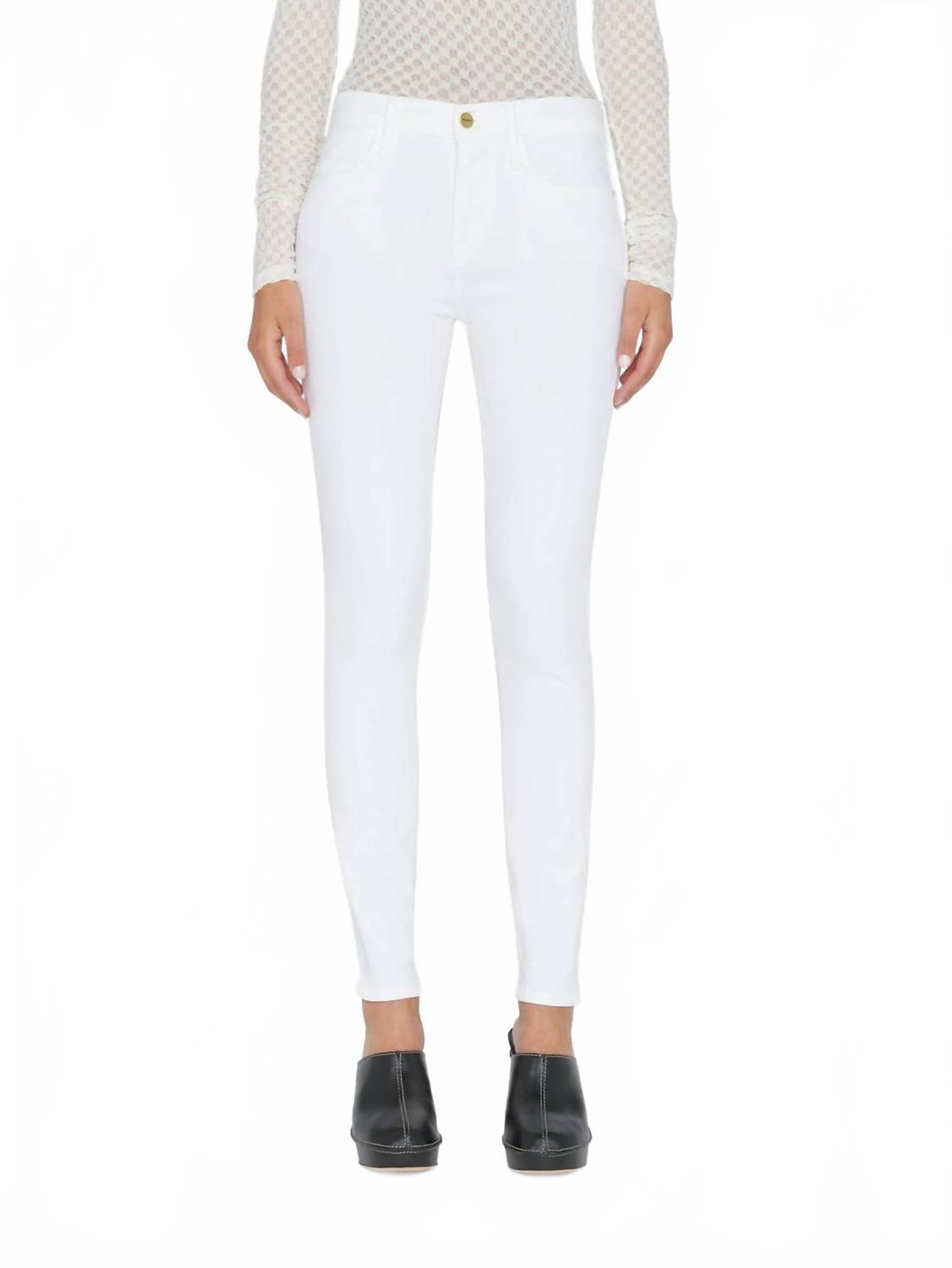 Джинсы FRAME Le High Skinny сочетают в себе классический стиль 70-х с высокой посадкой и современный крой скинни, идеально подходящий как для работы, так и для концертов. Джинсы изготовлены из 100% высококачественного хлопка однотонного белого цвета и отличаются суперэластичной тканью для дополнительного комфорта и быстрого восстановления формы. Карманы и застежка-молния обеспечивают практичность. Инструкция по уходу: машинная стирка и сушка в стиральной машине для легкого ухода, что делает эти джинсы универсальным дополнением к вашему весеннему гардеробу.