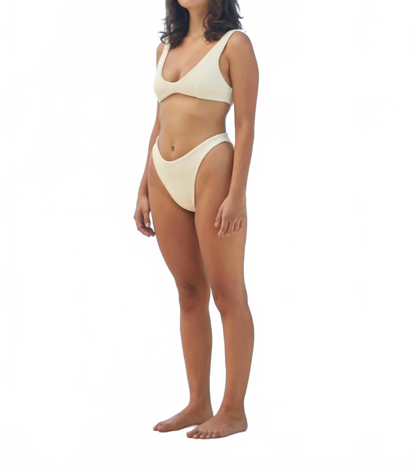 Попробуйте плавки-бикини Ribbed Beta от Haight - незаменимая вещь для вашего следующего пляжного дня. Эти текстурированные плавки-бикини из шикарного материала White Clay с высокой посадкой и средней степенью защиты обеспечат вам непринужденный стиль. Изготовленные из 98% полиамида и 2% эластана, они обеспечивают комфортную посадку и идеально соответствуют размеру. Поддержите летний тренд в стиле «спорт и отдых» с этим универсальным и незаменимым предметом бикини.
