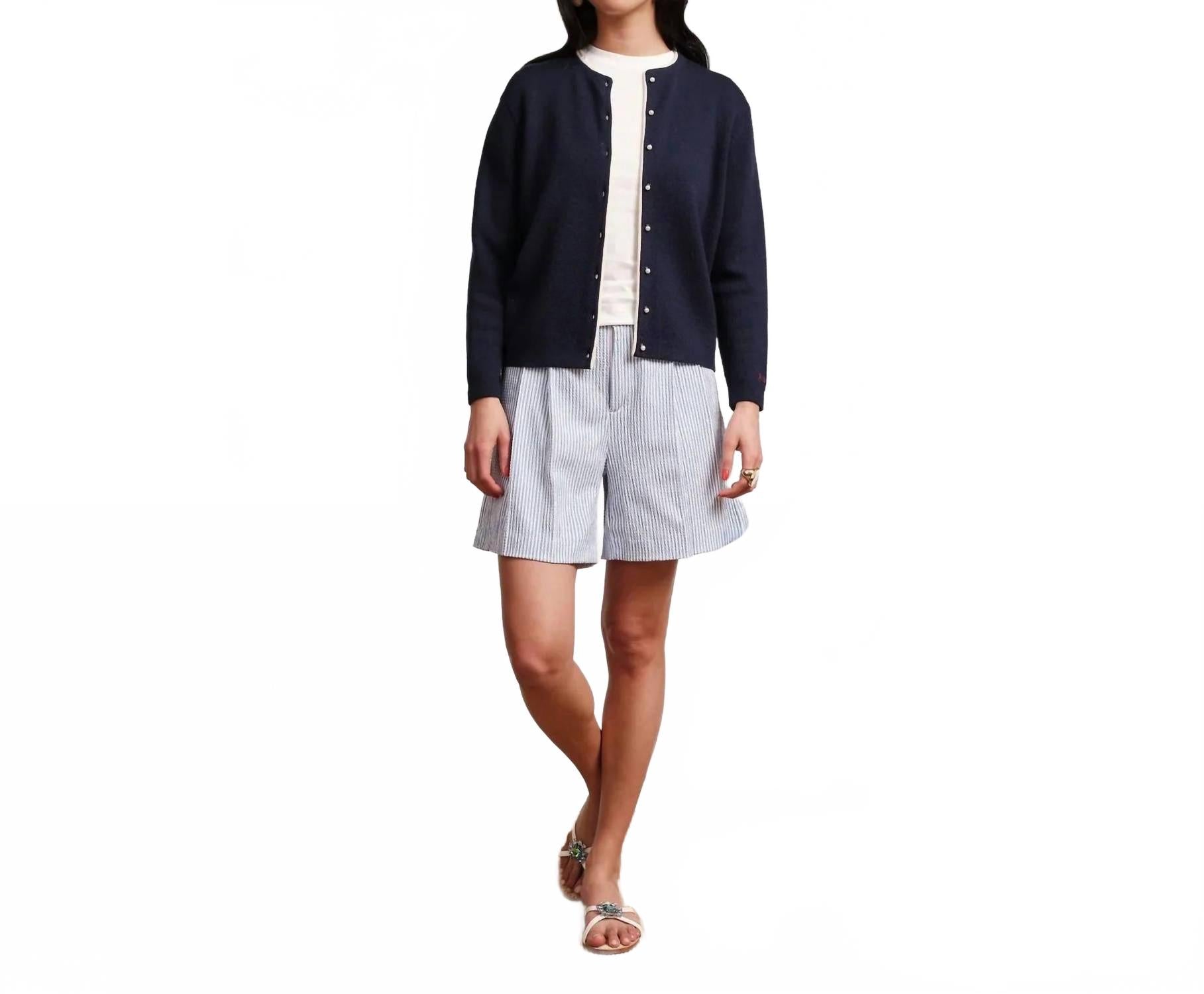 Высокая талия никуда не денется, и нам особенно нравится эта модель. Представляем шорты Benny Short от FRANCES VALENTINE - стильный выбор для вашего весеннего гардероба. Они выполнены из элегантного сирсакера в голубую и белую полоску. Эти женские шорты средней посадки со складками и внутренним швом длиной 15 см изготовлены из 100% хлопка для легкости и воздухопроницаемости. Прямой крой обеспечивает свободу движений и фирменную гофрированную текстуру. Эти шорты, произведенные в Турции, имеют три кармана, шлевки для ремня, гульфик на молнии и деревянные пуговицы. Уход прост: машинная стирка в холодной воде на деликатном режиме и сушка на горизонтальной поверхности.