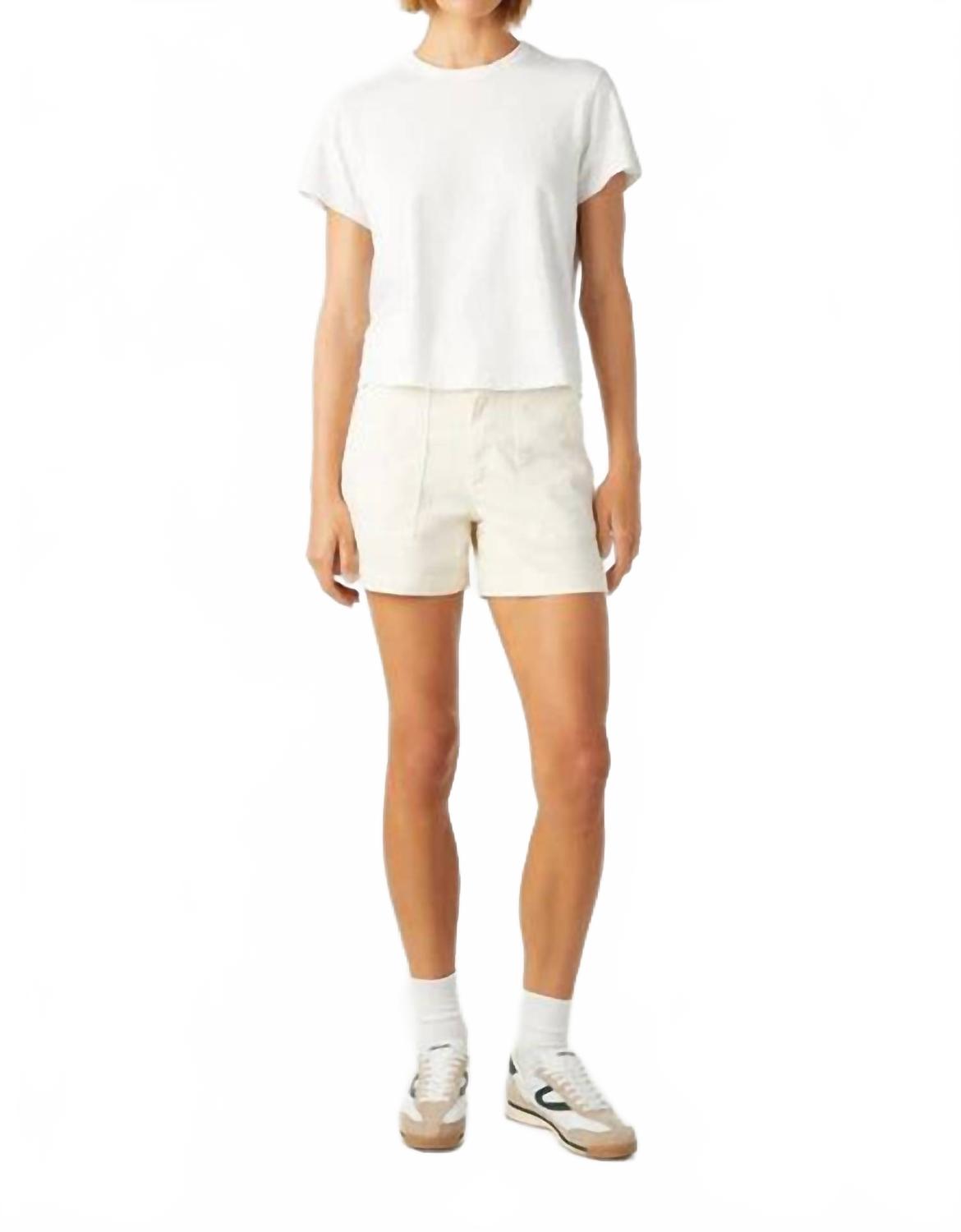 Шорты AMO Easy Army Short in Bone - это утонченная интерпретация традиционных карго со свободным кроем и внутренним швом 4,5 дюйма для комфорта и стиля. Изготовленные из хлопковой смеси в США, они оснащены практичными накладными карманами спереди и сзади и удобной застежкой-молнией. Ширина талии спереди составляет 11,5 дюйма, сзади - 16 дюймов, а ширина брючин - 24,5 дюйма. Замеры сделаны для размера 27. За ними легко ухаживать: достаточно стирать в стиральной машине и сушить в стиральной машине. Рост модели Анаис - 188 см, размер 25. Состав: 70% хлопок, 29% лиоцелл, 1% эластан.
