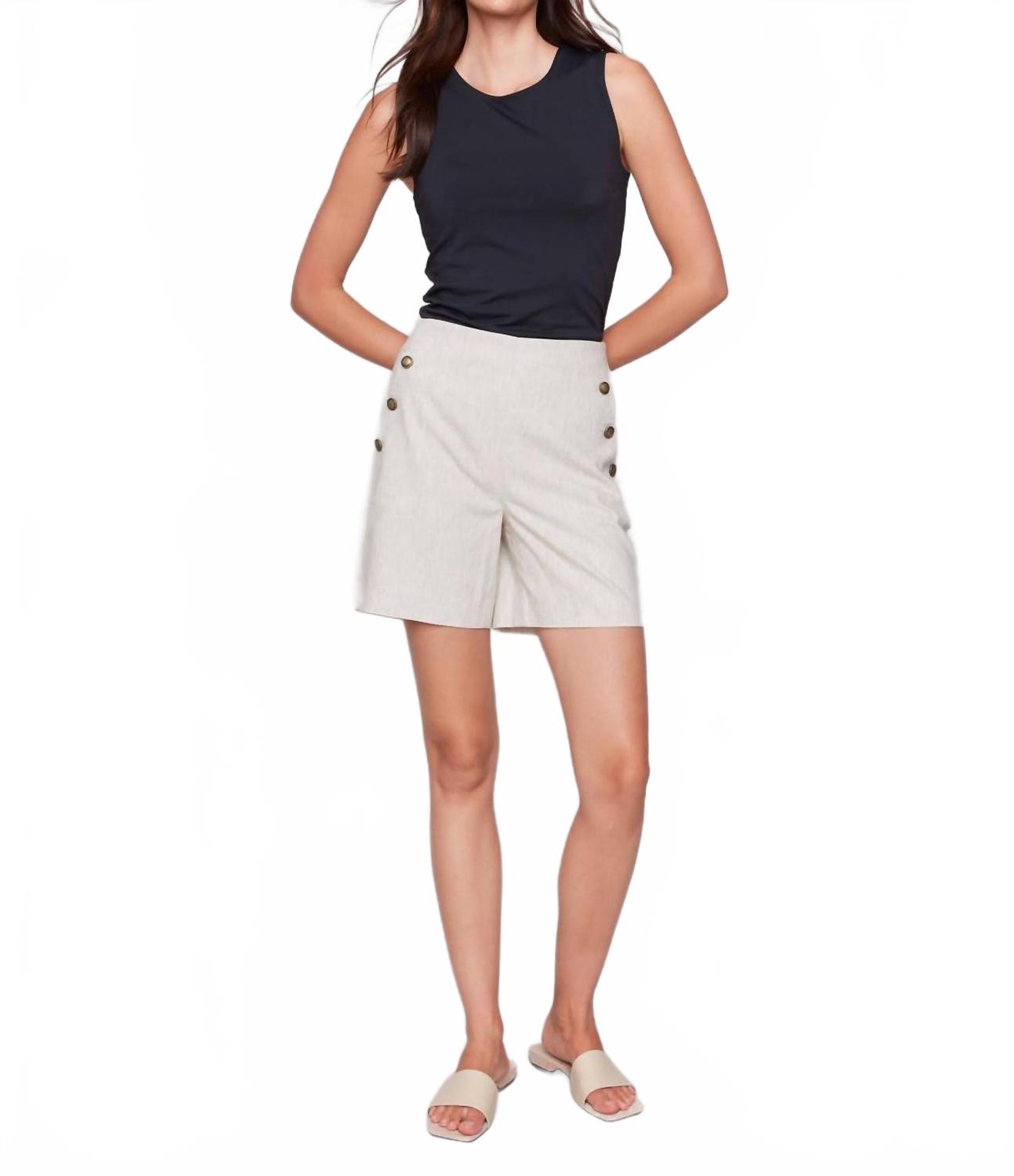 Льняные эластичные шорты с пуговицами в натуральном цвете CHARLIE B