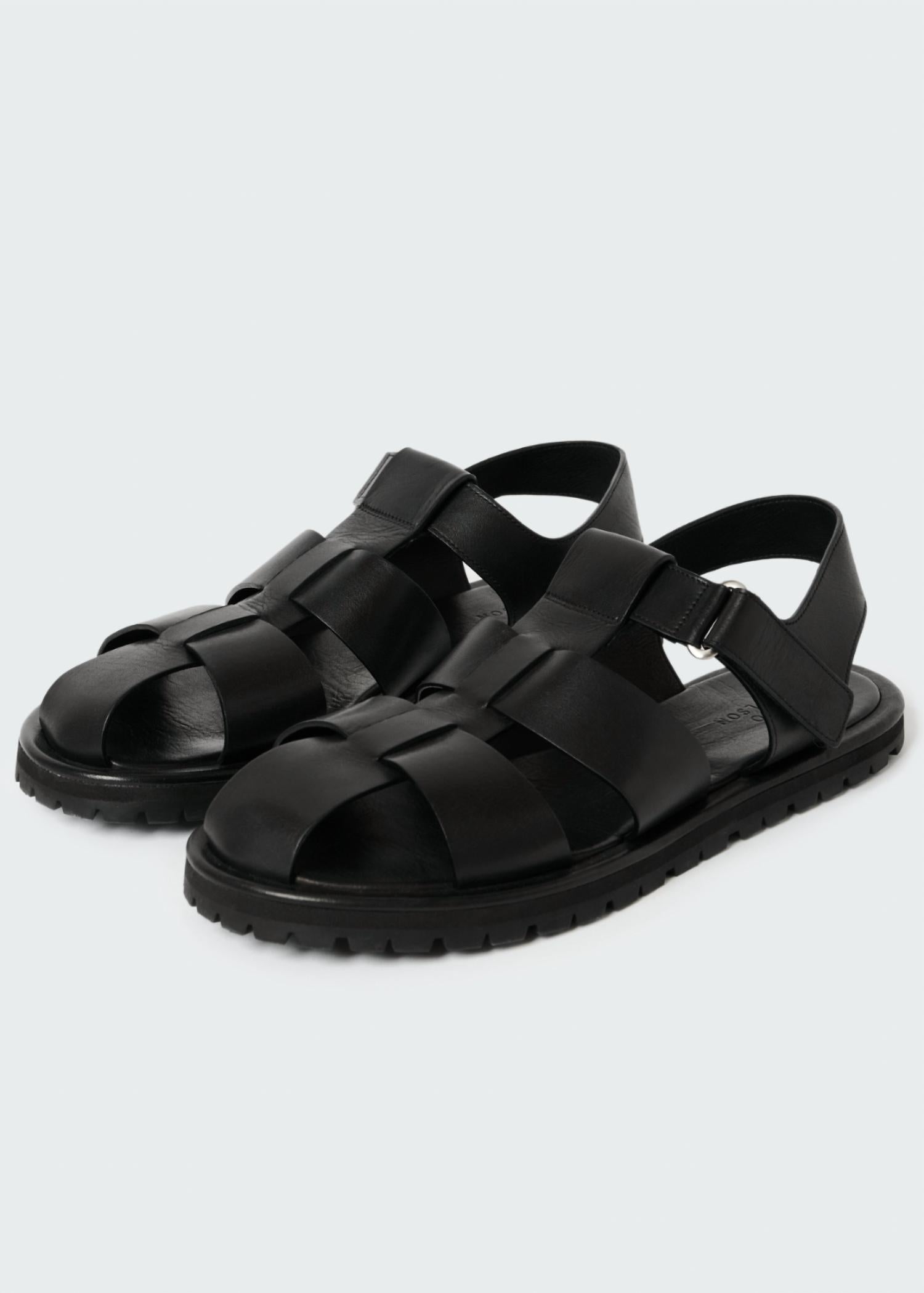 Струящиеся платья, укороченные брюки и даже комбинезоны... эти сандалии подойдут ко всему! Дополните свой сезонный образ женскими сандалиями Fisherman Sandal от Studio Nicholson, созданными в черном цвете, чтобы подчеркнуть непринужденную элегантность. Эти сандалии выполнены из кожи и застегиваются на липучку для надежной посадки. Мягкая стелька обеспечивает комфорт, а резиновая подошва Vibram - превосходное сцепление. Материал: 100% кожа. Уход: удаляйте загрязнения и жирные пятна чистой тканью и используйте нейтральный полироль для ухода. Они идеально подходят для отпуска или летних прогулок благодаря круглому носку и плоской пятке, воплощая стиль бохо-шик.