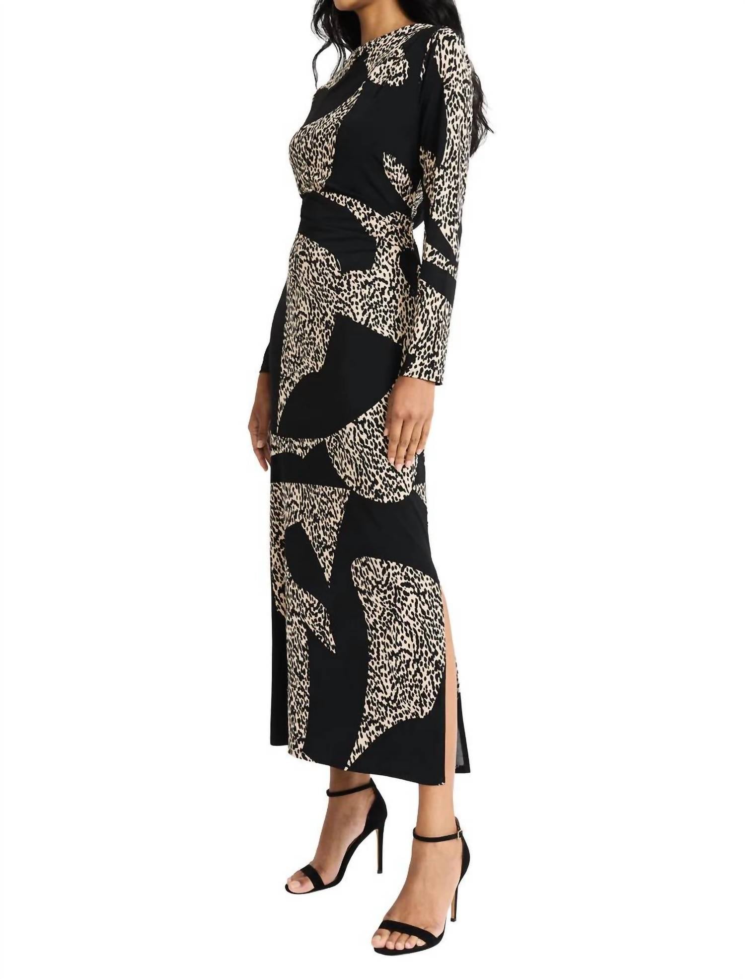 Окунитесь в атмосферу гламура и изысканности. Шикарные длинные рукава. Изготовлено из роскошной смеси 95% полиэстера и 5% спандекса, что обеспечивает элегантный облегающий силуэт. Изящная длина макси и соблазнительный высокий разрез сбоку добавляют нотку драматизма, идеально подходит для коктейльных вечеринок. Застежка-липучка. Стирать в стиральной машине в холодной воде с вещами похожих цветов на щадящем режиме, используя только отбеливатель без хлора при необходимости. Размер в размер. Рост модели: 178 см, обхват груди: 86 см, обхват талии: 65 см, обхват бедер: 91 см.