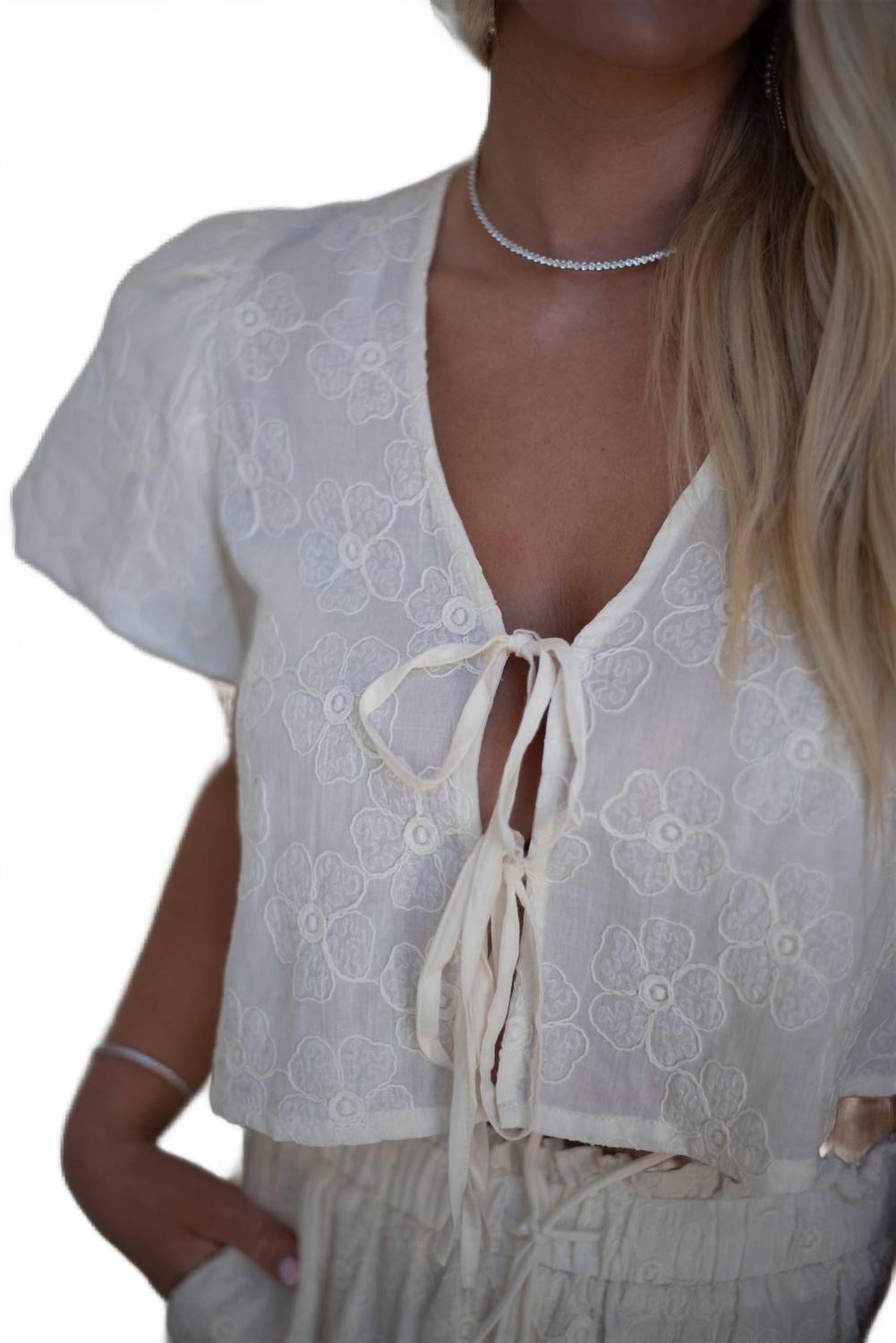 Этот очаровательный комплект не захочется снимать. Этот стильный комплект идеально подходит для отдыха и отдыха. Lizzie Bubble Short Set от MABLE - это стильный и универсальный комплект домашней одежды изысканного кремового оттенка, идеально подходящий для самых разных летних случаев. Благодаря фактурному узору и модному стилю бохо-шик, комплект с короткими рукавами и V-образным вырезом идеально подходит для отпуска или неформальной прогулки. Хотя подробные инструкции по уходу не предоставляются, этот простой в использовании крой продается вместе с регулируемой завязкой спереди для индивидуальной посадки. На модели размер S, что гарантирует точность размера.