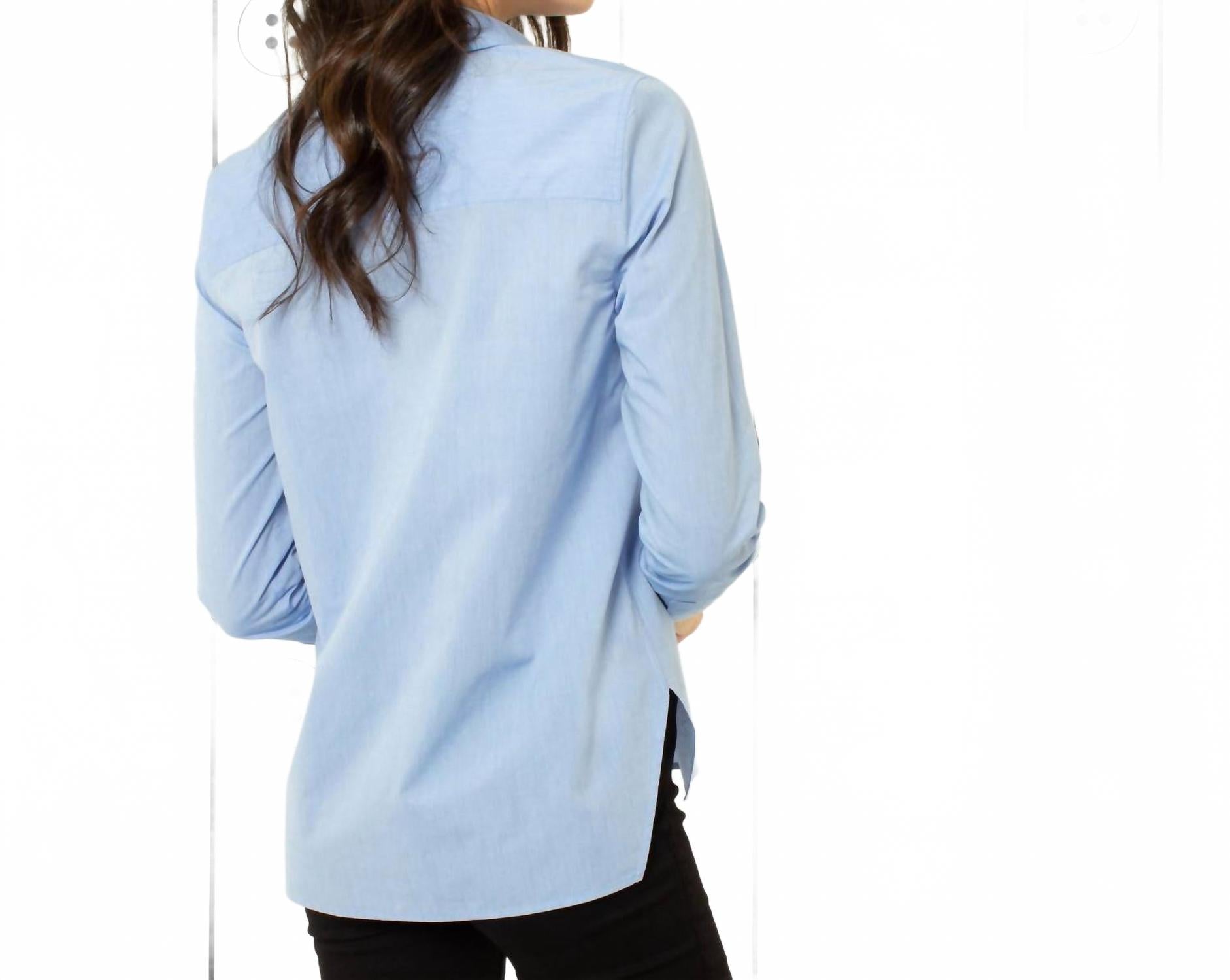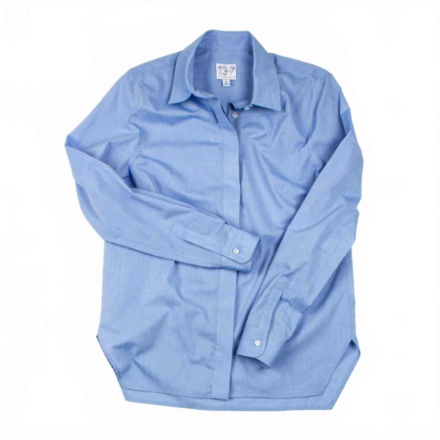 Идеальная посадка, милый дизайн, мягкая ткань. Вам понравится все в этой футболке с длинным рукавом. Представляем футболку Trapezoid Shirt от Thirteen Seven - изысканный вариант классического школьного образа в очаровательном синем цвете Little Boy Blue. Эта женская футболка с длинным рукавом изготовлена ​​из 100% хлопка, с однотонным узором и воротником-стойкой, что делает ее стильной и универсальной. Потайные пуговицы сзади обеспечивают свободный крой, а закрытая планка обеспечивает аккуратный силуэт. Уход за изделием прост: стирать в стиральной машине в теплой воде, сушить в тени, при необходимости гладить теплым утюгом или воспользоваться химчисткой.