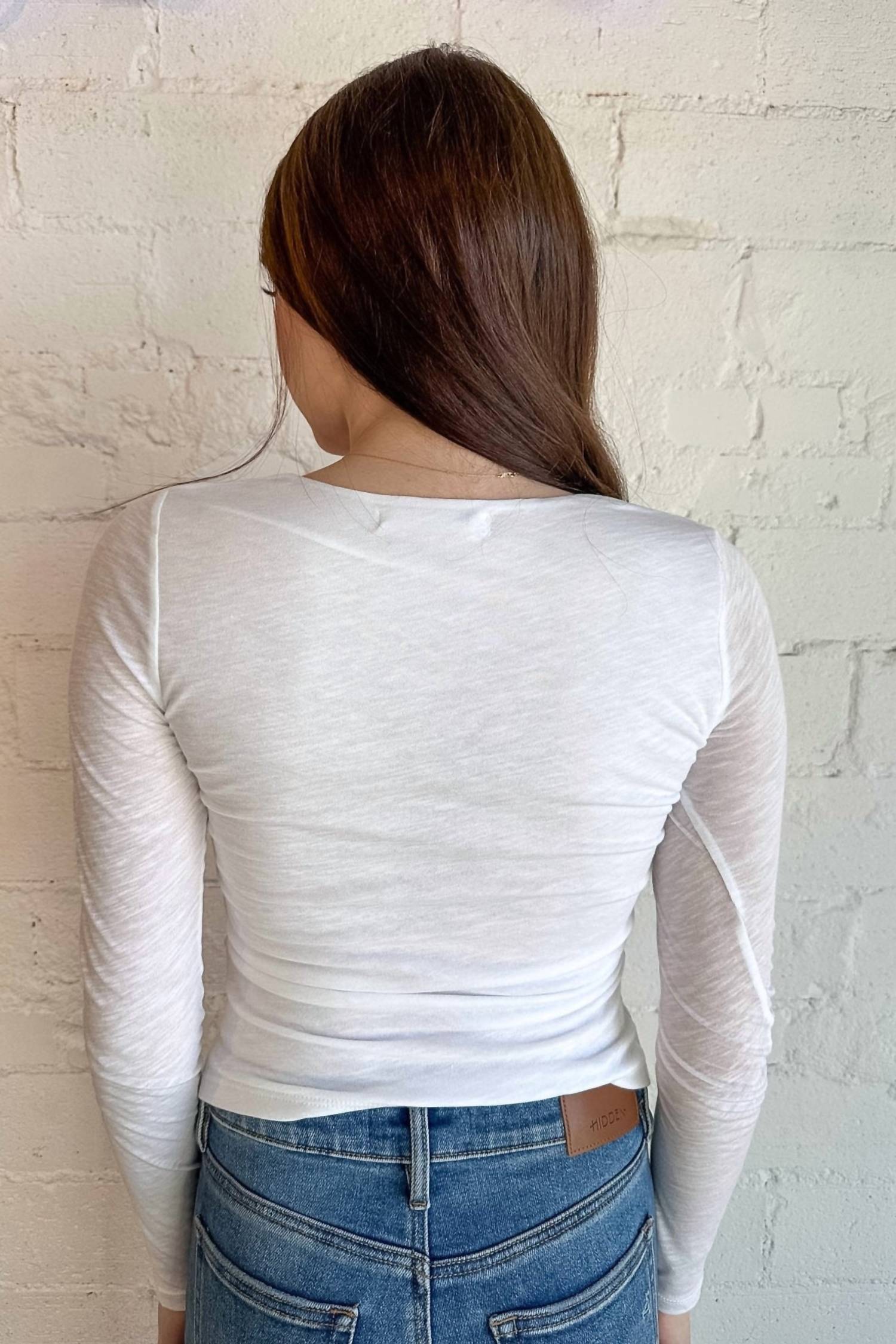 Длинный рукав, который можно носить с джинсами, юбками, да практически с чем угодно! Бесшовная футболка Dani Seamless Tee от PROJECT SOCIAL T воплощает элегантный дизайн и повседневный комфорт, идеально подходящий для современной женщины. Эта белая футболка с облегающими длинными рукавами и шикарным квадратным вырезом идеально подходит для многослойного ношения или самостоятельного ношения. Изготовленная из 50% полиэстера и 50% хлопка, она дышащая и удобная, легко надевается. Уход очень прост: машинная стирка в холодной воде и глажка при низкой температуре. Модель Белла носит размер S, ее рост 178 см, обхват груди 88 см, талия 66 см и обхват бедер 96 см.
