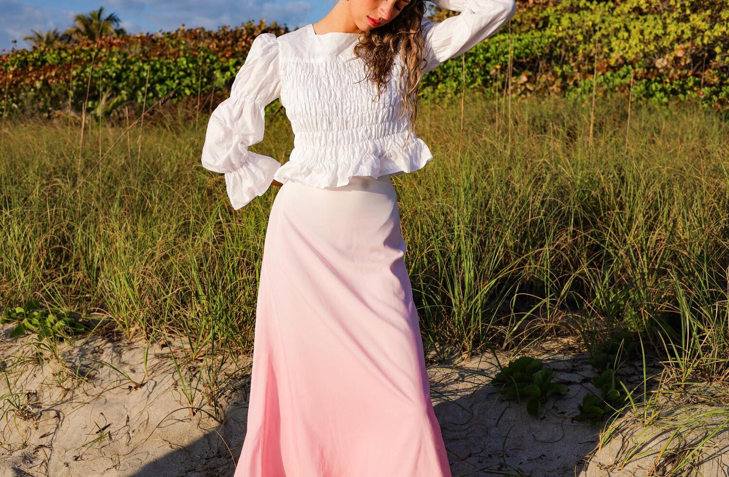 Esteem Couture представляет юбку-миди Kellie - элегантное дополнение к вашему гардеробу, идеально подходящее для весны и особых случаев, таких как День святого Валентина или праздничные вечеринки. Эта юбка А-силуэта розового цвета выполнена из струящегося крепа с узором тай-дай, который подчеркивает мягкие оттенки с эффектом омбре, создавая эффектный, но в то же время забавный образ. Юбка без карманов не предназначена для активного отдыха, но имеет утонченный силуэт, идеально подходящий для женщин. Хотя особые рекомендации по уходу не предусмотрены, роскошная текстура и дизайн этой модели делают ее идеальным выбором для любого праздничного мероприятия.