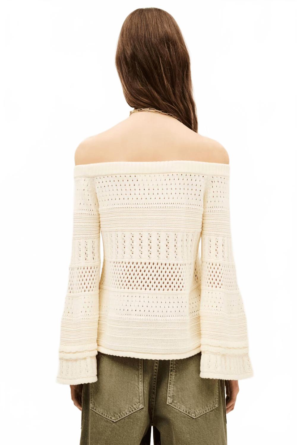 Бегаете ли вы по городу или отдыхаете дома, эта толстовка подойдет и для того, и для другого. Ощутите непринужденную элегантность и комфорт в длинном свитере Daxie от ba&sh, который станет незаменимой вещью в любом летнем гардеробе. Этот бежевый свитер с длинными широкими рукавами и шикарным вырезом с открытыми плечами и ребристой отделкой создает легкую ажурную текстуру, идеально подходящую для образа в стиле бохо-шик. Изготовленный из 100% органического хлопка и произведенный в Италии, этот предмет одежды сочетает в себе экологичность и роскошь. Благодаря застежке-липучке его легко носить, а для удобства ухода можно стирать в стиральной машине.
