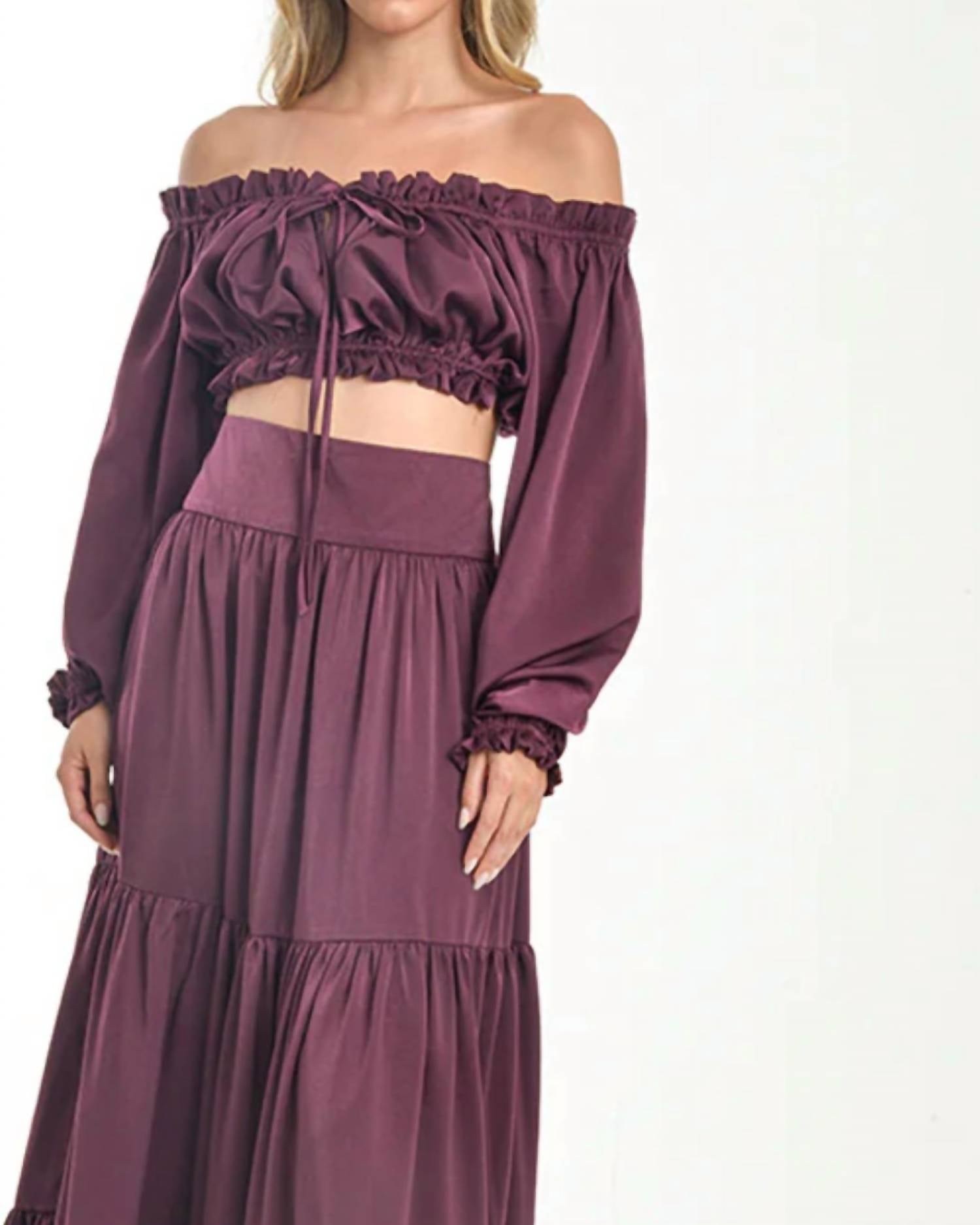 Повседневное, удобное и милое! Платье, которое вы будете носить весь сезон. Подчеркните свой стиль с помощью комплекта одежды с открытыми плечами от Steffany Milano, который предлагает романтичный и одновременно шикарный образ в ярком бордовом оттенке. Этот комплект включает в себя укороченный топ с длинными рукавами и оборками, а также многоярусную юбку макси А-силуэта - идеальный вариант для коктейльной вечеринки. Изготовленный из смеси хлопка (65% полиэстера и 35% хлопка), он воплощает комфорт и элегантность, отражая тихую роскошь этого сезона. Этот комплект, созданный для модниц, следящих за модой, обещает очаровать любого весеннего мероприятия.