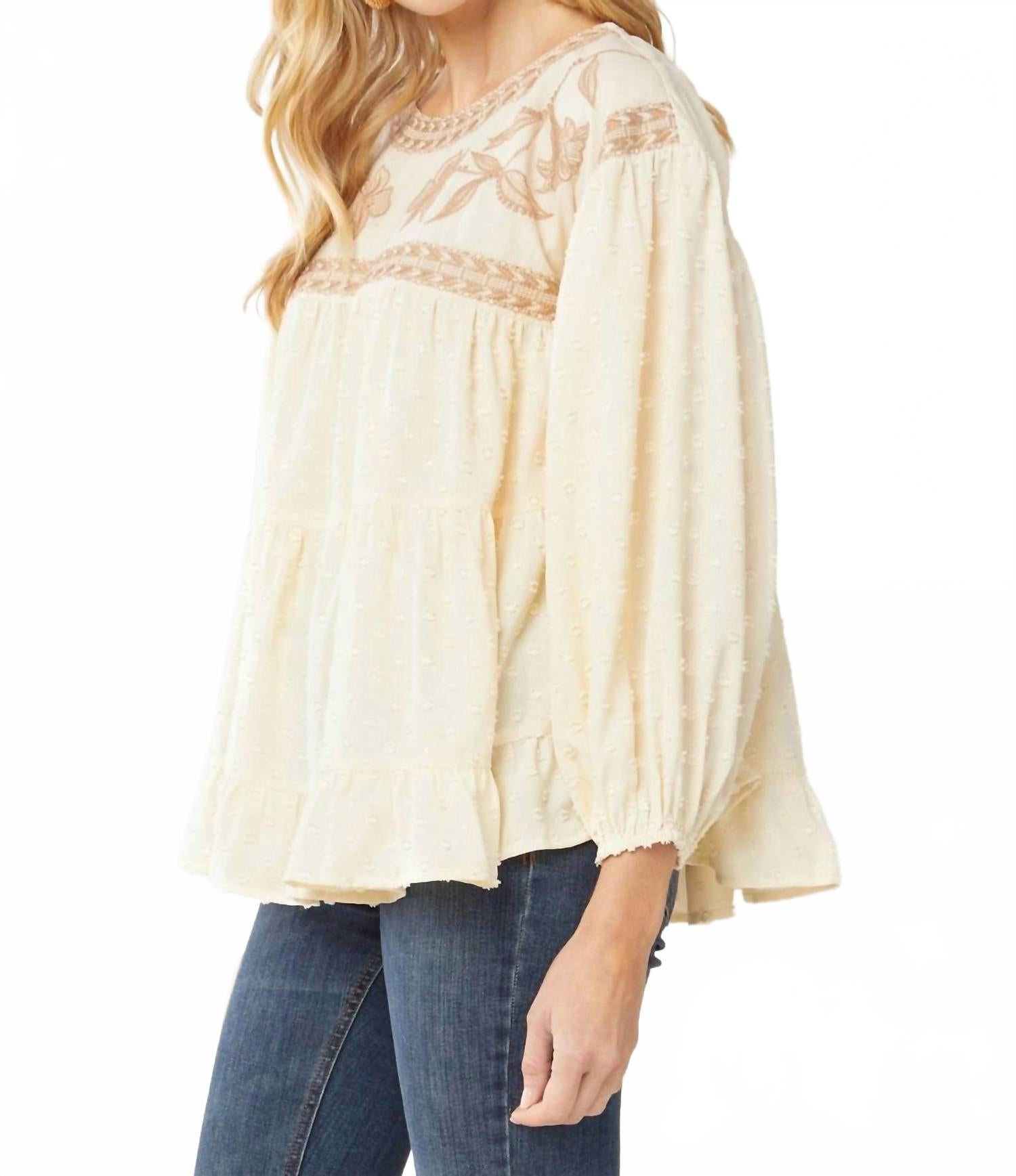 Блузка в стиле бохо-шик, которая никогда не выйдет из моды. Ощутите стиль бохо-шик с вышитой блузкой Entro Swiss Dot натурального цвета. Эта женская блузка с длинными рукавами 3/4, эластичными манжетами и изысканной вышивкой на классической полиэстеровой ткани с рисунком «швейцарский горошек» украшена. Эта легкая модель с многоярусным лифом, оборками по низу и А-образным силуэтом идеально подходит для летнего отдыха. Застежка на пуговицы. Уход: ручная стирка или химчистка. Размеры: для маленькой груди: 38 дюймов (91 см), длина 26 дюймов; для средней груди: 40 дюймов (102 см), длина 26 дюймов; для большой груди: 42 дюйма (102 см), длина 26 дюймов.