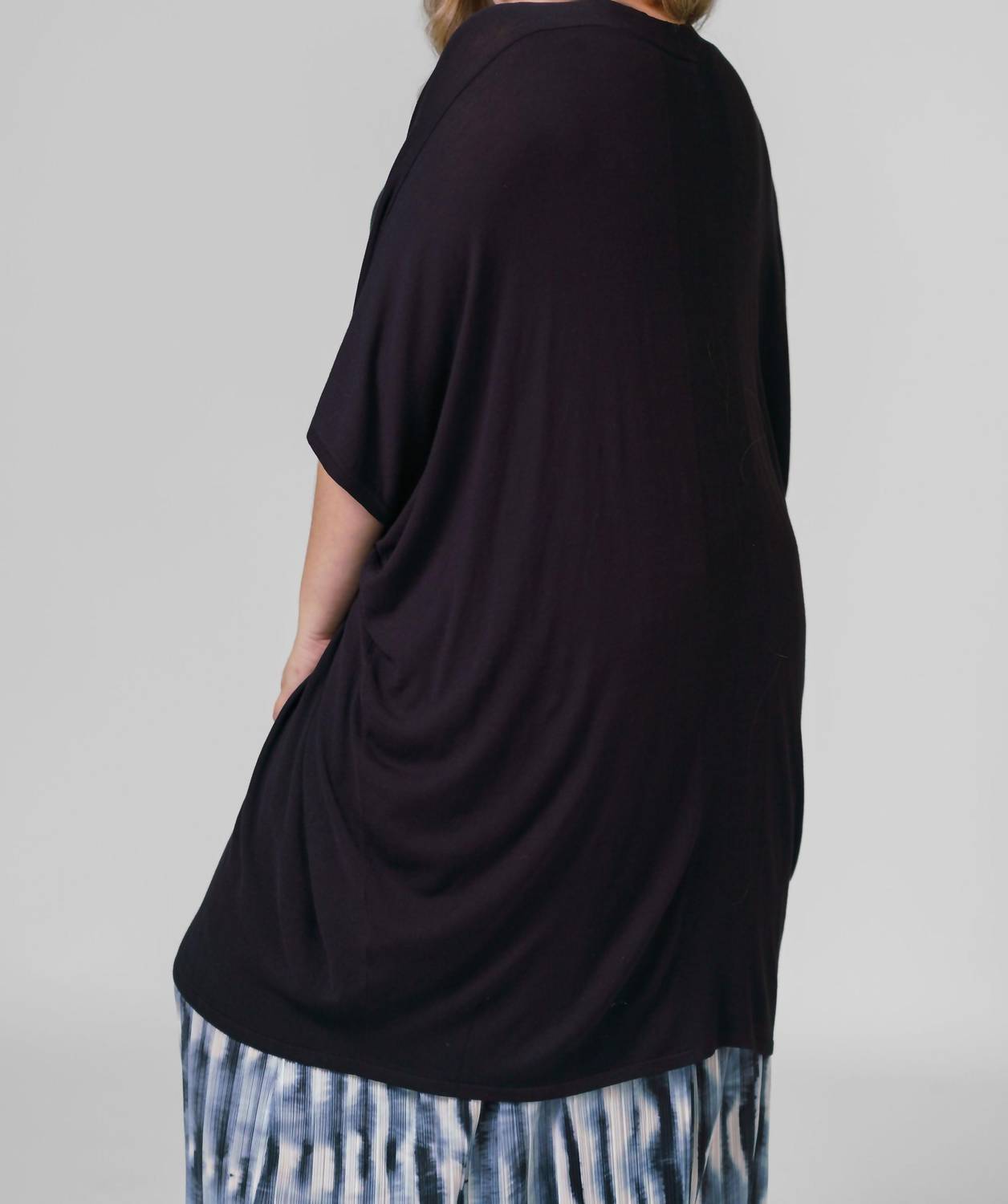 Оцените универсальность этой туники, искусно сшитой для создания бесшовных многослойных образов или самостоятельного ношения. Продуманный дизайн и удобная посадка делают ее идеальным дополнением к любому гардеробу. Дополните свой повседневный образ туникой Bloom Knit от Bitte Kai Rand - универсальной вещью, которая идеально впишется в любой гардероб. Эта однотонная черная туника plus-size из тонкого трикотажа имеет рукава три четверти и элегантный V-образный вырез. Свободный крой и разрез спереди обеспечивают комфорт и свободу движений, что делает ее идеальным вариантом для повседневного сочетания с джинсами и кроссовками. Застежка - надевается.