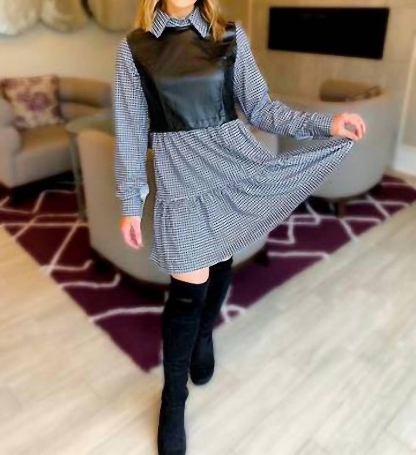 Платье Farrah Dress от With Love, Molly - это легкое и элегантное, которое вы будете носить круглый год. Платье Farrah Dress от With Love, Molly гармонично сочетает в себе классическое очарование и современную строгость, что подтверждается длинными рукавами и узором в клетку. Это мини-платье А-силуэта из искусственной кожи с воротником-стойкой и застежкой-молнией сзади для удобства ношения. Многоуровневый крой добавляет образу нотку нежности, а черно-белый клетчатый принт гарантирует вневременную привлекательность. Уход прост: ручная стирка и сушка на веревке. Если размер не совпадает, рассмотрите вариант большего размера для идеальной посадки.