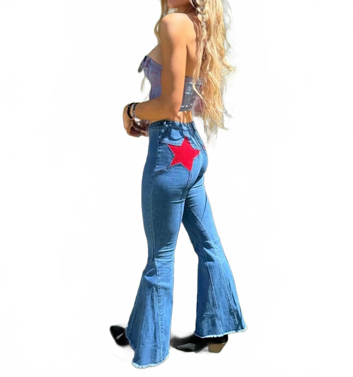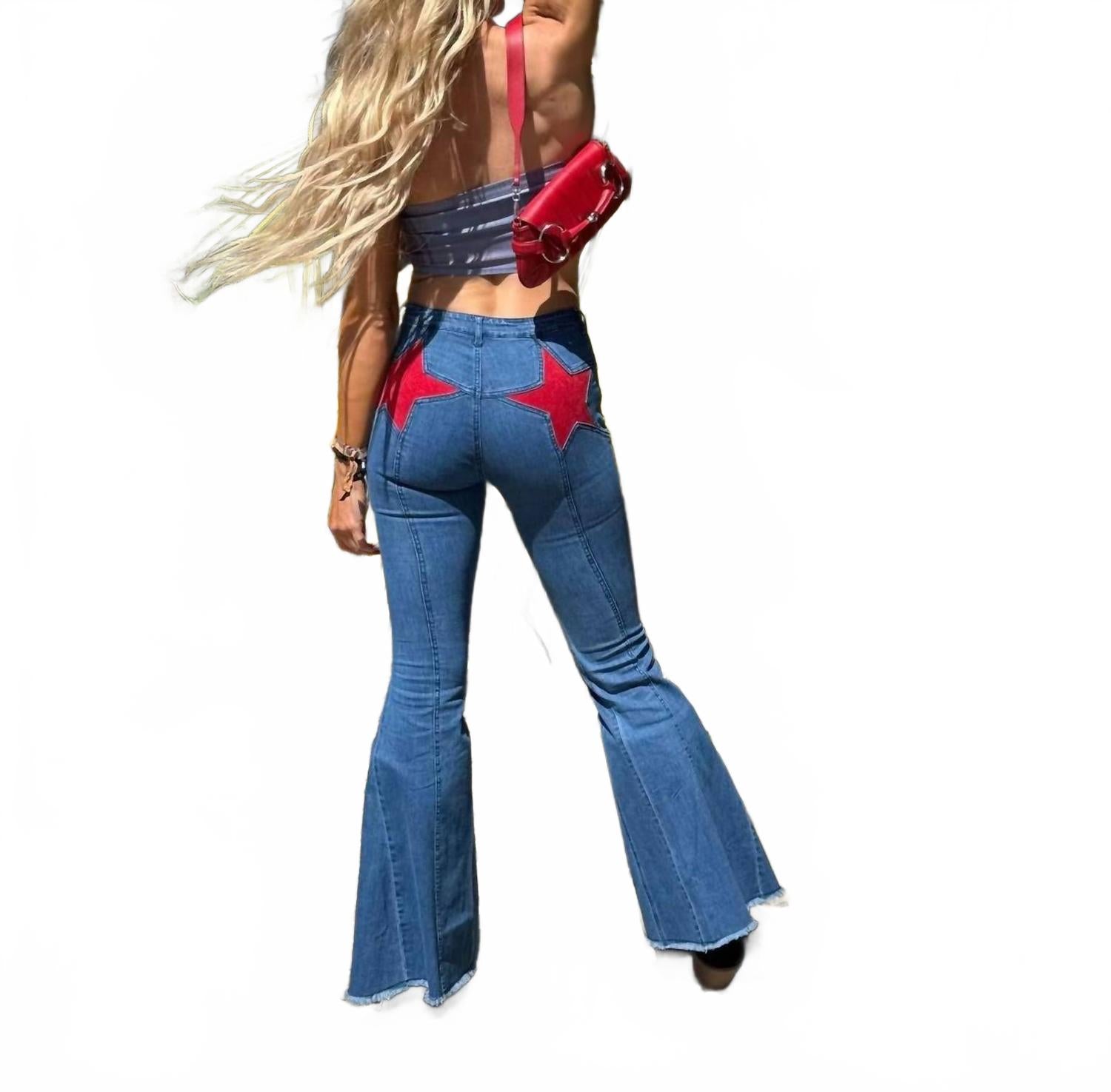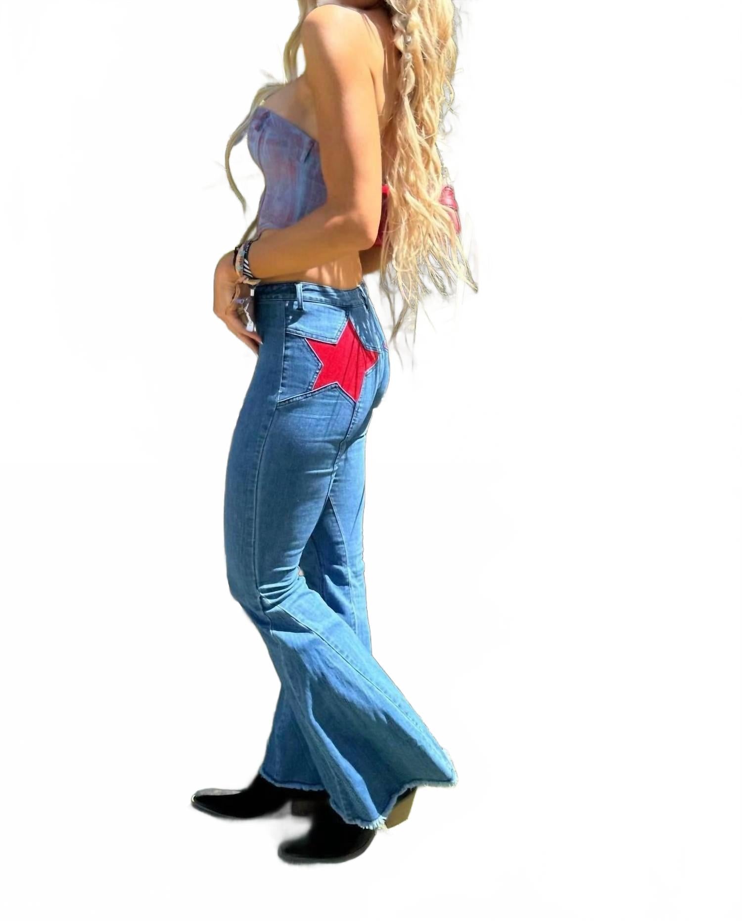 Ваш идеальный выбор для создания яркого уличного образа. Высокая посадка и расклешенный силуэт в эффектном синем цвете средней насыщенности. Изготовлены из 70% хлопка, 28% полиэстера и 2% спандекса. Уникальная коричневая вставка в виде звезд из искусственной замши и прошитый бахромчатый подол. Застежка на пуговицы и шлевки для ремня добавляют практичности, а внутренний шов 35 дюймов обеспечивает идеальную посадку. Инструкции по уходу включают машинную стирку и сушку в стиральной машине. Идеально подходят для осенних путешествий, соответствуют размеру, размеры S подходят для талии 25-26 дюймов.