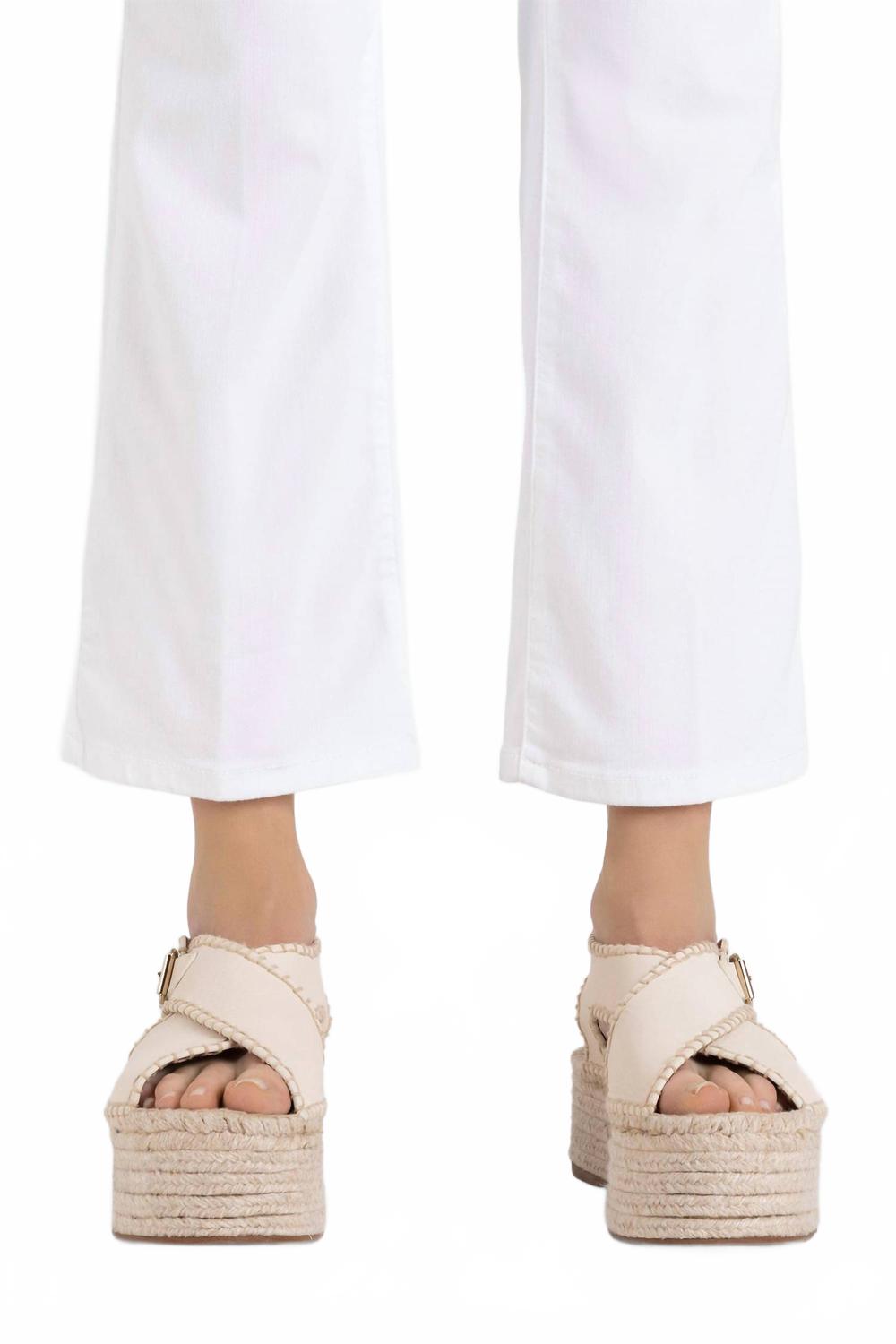 Идеальные укороченные джинсы для межсезонья. Встречайте джинсы Dream Kick Authentic от MAC Jeans - незаменимая вещь в любом гардеробе благодаря стильному и универсальному дизайну. Эти женские укороченные джинсы длиной до щиколотки и длиной до щиколотки выполнены из хлопковой смеси белоснежного оттенка с текстурированным узором и средней посадкой. Джинсы имеют прямой крой с небольшим расклешением к низу, что придает им современный вид, и классический пятикарманный крой для практичности. Застежка: пуговицы. Рекомендуется машинная стирка. Джинсы прекрасно сочетаются с топами нейтральных тонов и босоножками на платформе, создавая элегантный образ.