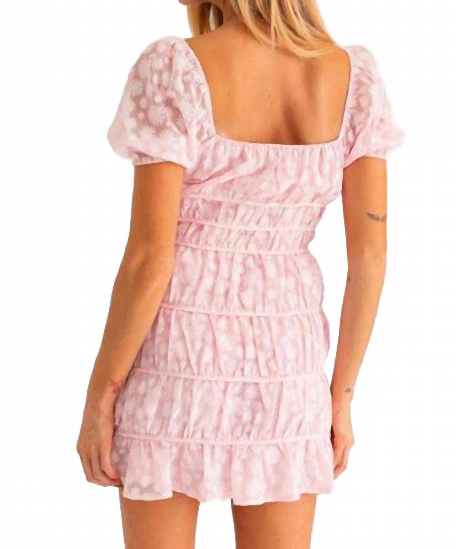 Короткое и воздушное платье для теплых дней. Шагните в лето в платье Love At First Blush от LE LIS - мечтательном мини-платье розового цвета, созданном для того, чтобы покорять сердца. Это очаровательное изделие отличается короткими развевающимися рукавами-буфами и кокетливым многоярусным облегающим силуэтом, украшенным нежной вышивкой в ​​виде ромашек, которая добавляет ему очарования. Платье изготовлено из хлопковой смеси (50% хлопок, 50% полиэстер) в Китае и имеет женственный V-образный вырез. Застежка - удобная, легко надевается, идеально подходит для любого романтического случая, например, Дня святого Валентина или особого дня рождения.