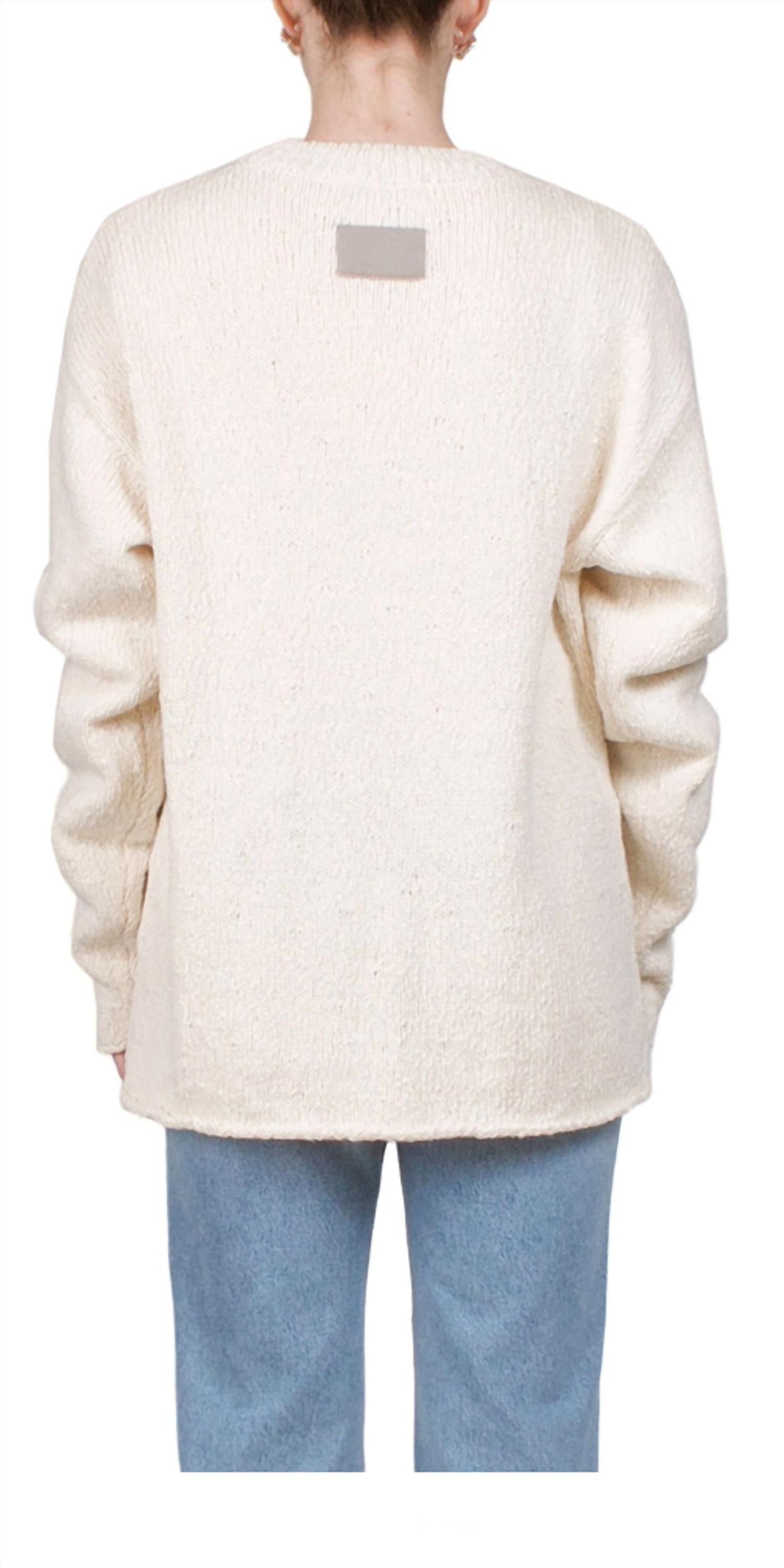 Представляем винтажный свитер с круглым вырезом от Aya Muse - роскошную базовую вещь в классическом кремовом оттенке, идеально подходящую для путешествий. Этот свитер с длинными рукавами имеет свободный крой унисекс с преувеличенным силуэтом. Он искусно изготовлен из 100% хлопка с текстурой, напоминающей букле. Застежка - надевается. Легко воплощайте минималистичный стиль. На модели рост 168 см, размер XXS.