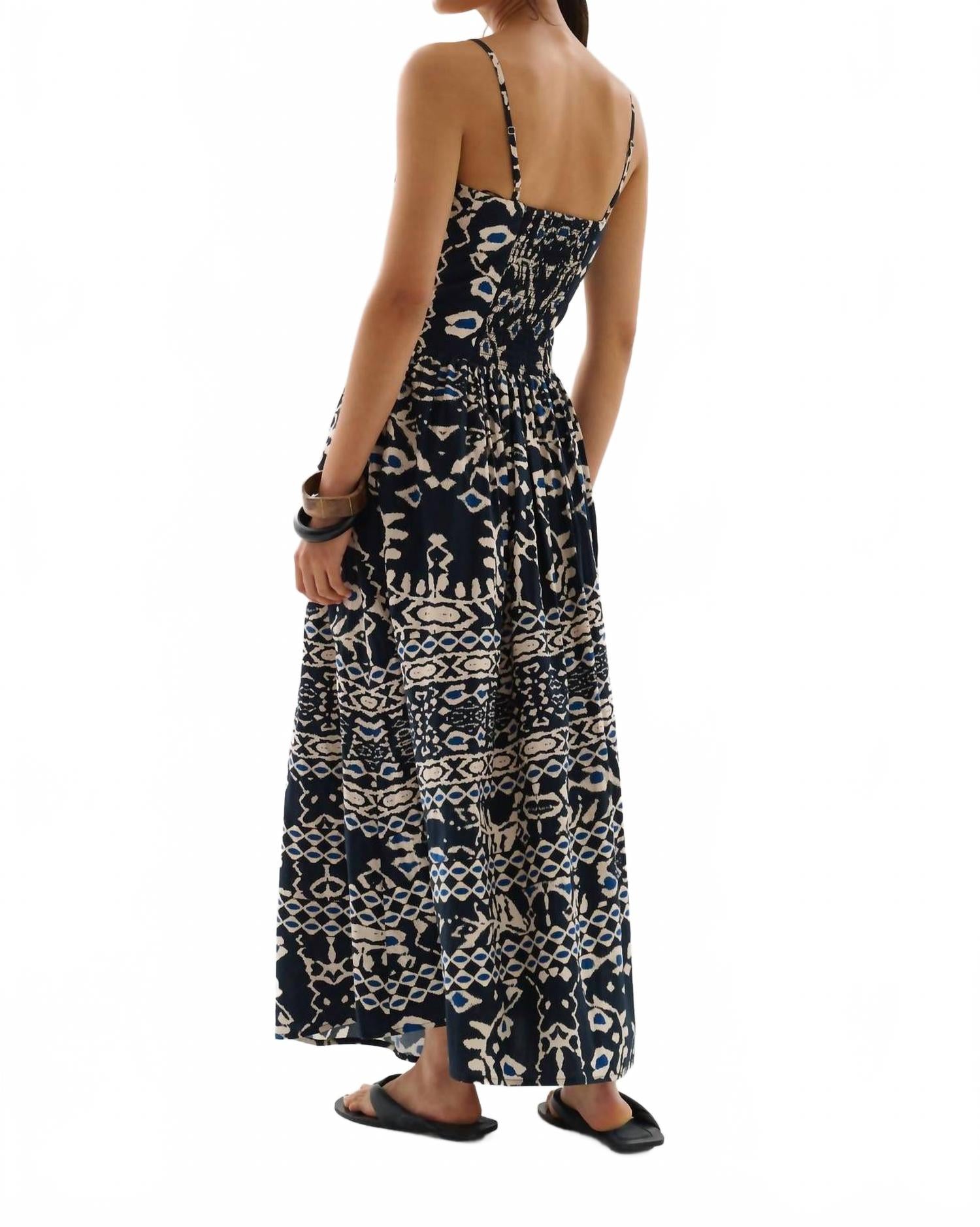 Дополните это макси-платье любимым эффектным ожерельем и сандалиями для идеального образа. Длинное платье Ensenada Finley от Maria Cher - изысканное изделие морского цвета, идеально подходящее для вашего летнего гардероба. Это макси-платье без рукавов выполнено из поплина из 100% органического хлопка. Лиф с рюшами, тонкие регулируемые бретельки и присборенная спинка обеспечивают удобную посадку. Струящийся А-образный силуэт с замысловатым узором и боковыми карманами воплощает стиль бохо-шик. Рекомендации по уходу: ручная стирка в прохладной воде, сушка в расправленном виде в тени, предотвращение использования отбеливателя и выкручивания.